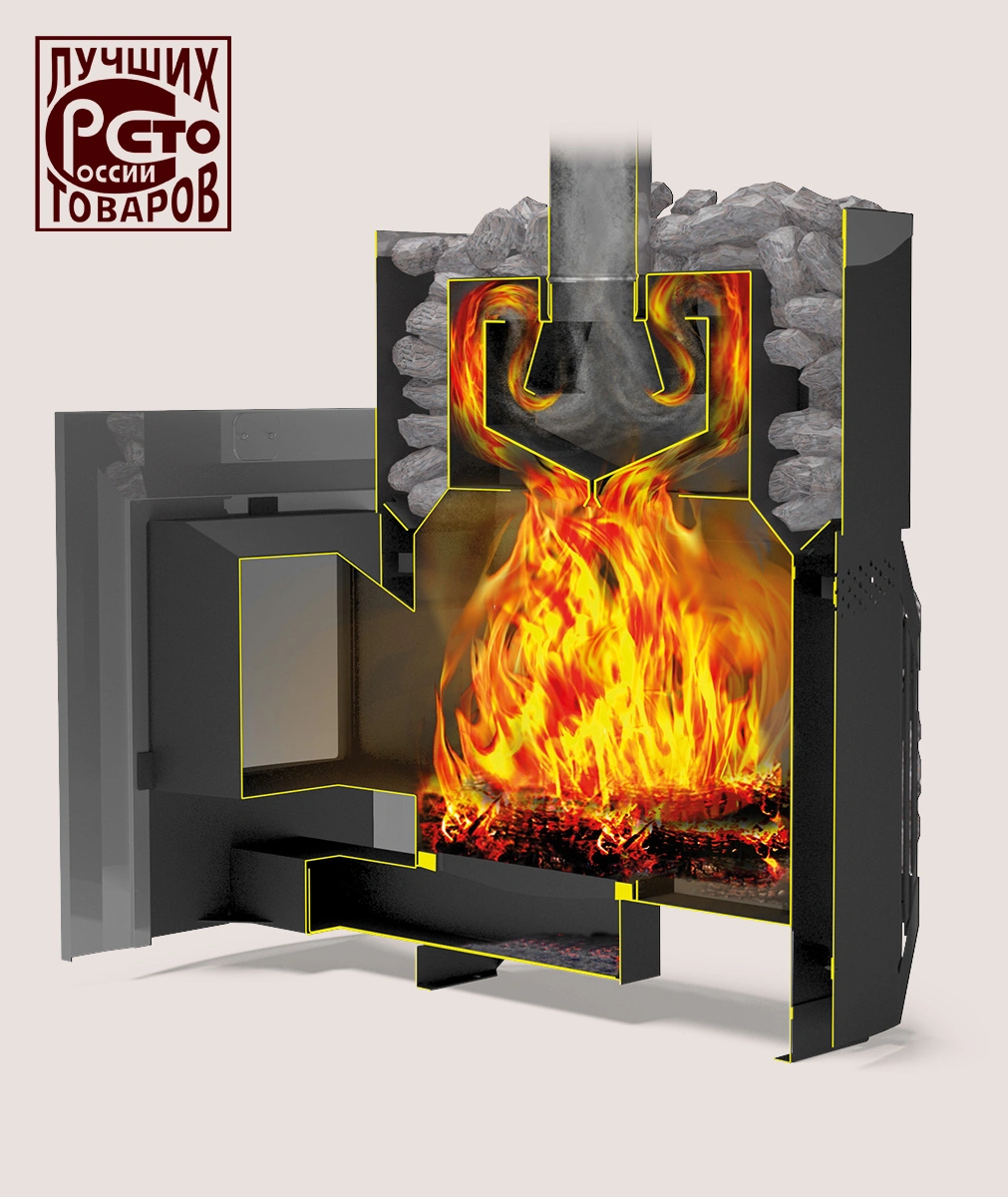 - Доступность. Гибкая комплектация (камни и элементы дымохода приобретаются отдельно) позволяет адаптировать печь под индивидуальные потребности.