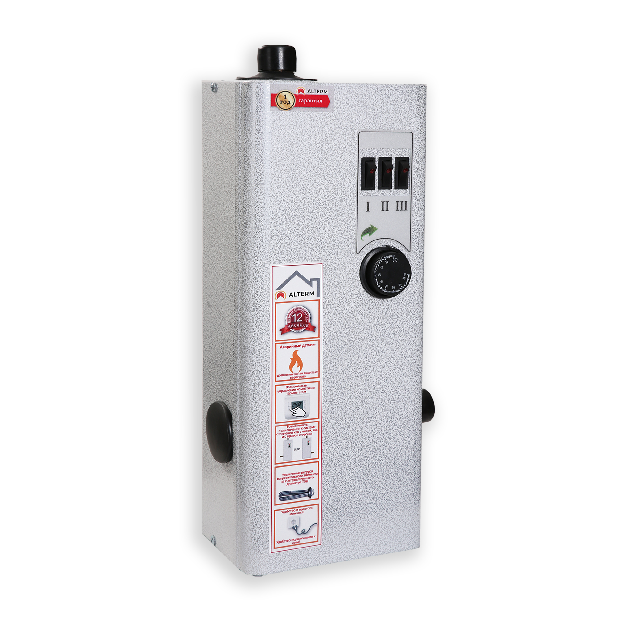 Работа котла основана на прогреве водяного потока: вода циркулирует через водопроводную систему и блок ТЭНБ, нагреваясь до заданной температуры. Автоматическое поддержание температурного режима обеспечивается датчиком‑реле, который регулирует работу устройства в соответствии с установленными параметрами.