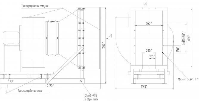 Для защиты от вибрации, создаваемой вентилятором, используются мягкая вставка и виброизоляторы. Нагревательный блок и вентилятор смонтированы на общей раме.