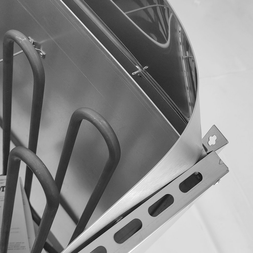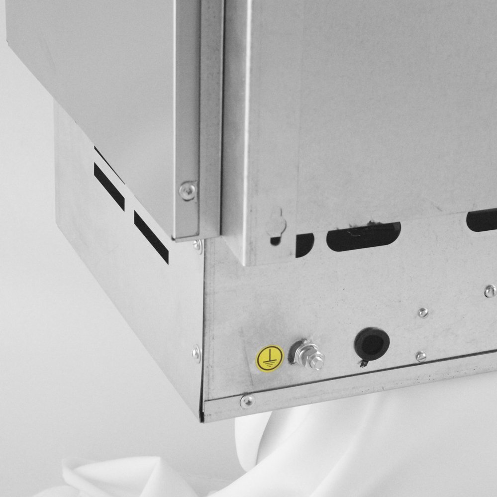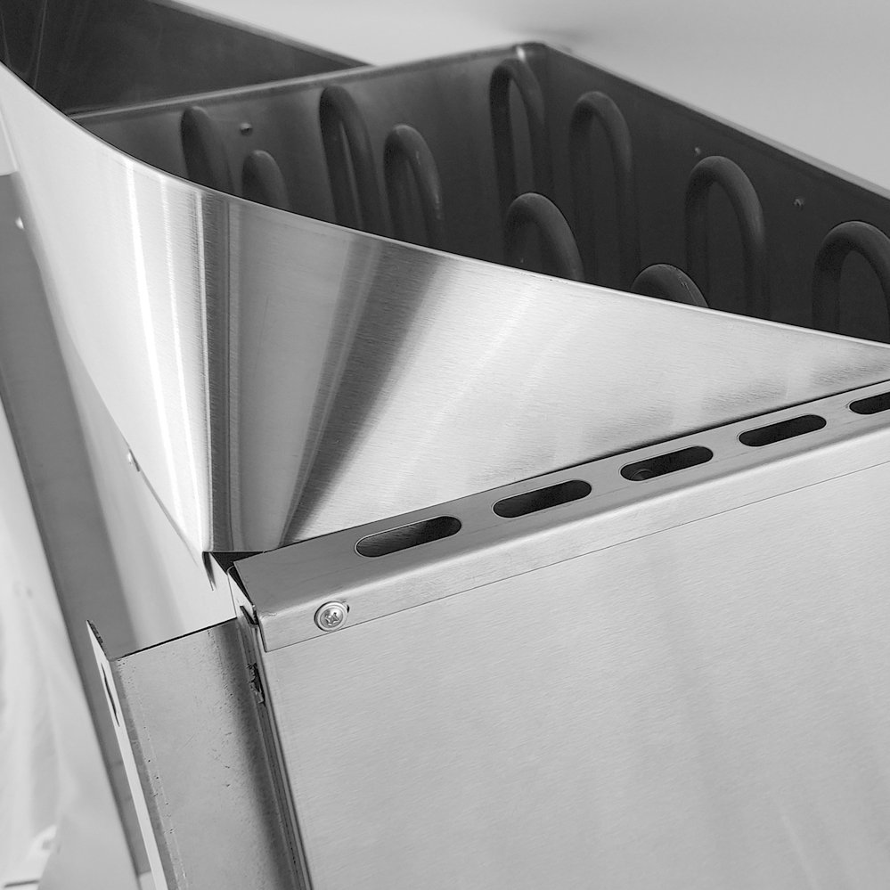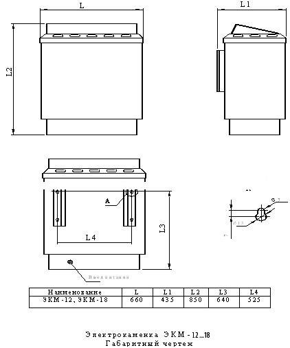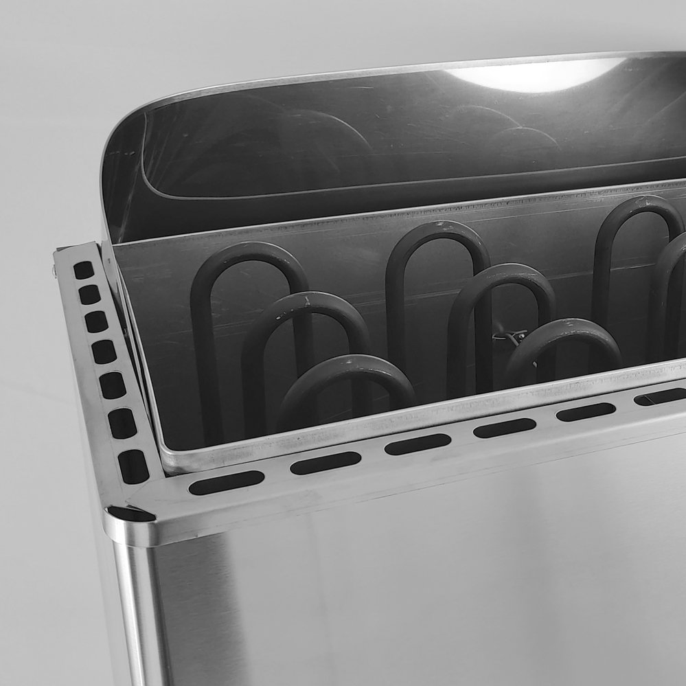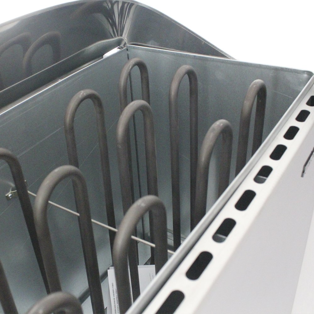 Изделие выполнено в корпусе из зеркальной нержавеющей стали. Внутри корпуса размещена камера с трубчатыми электронагревателями. Вокруг нагревательных элементов укладывается каменная засыпка (размер камней — 8–10 см) вплоть до верхнего края корпуса.