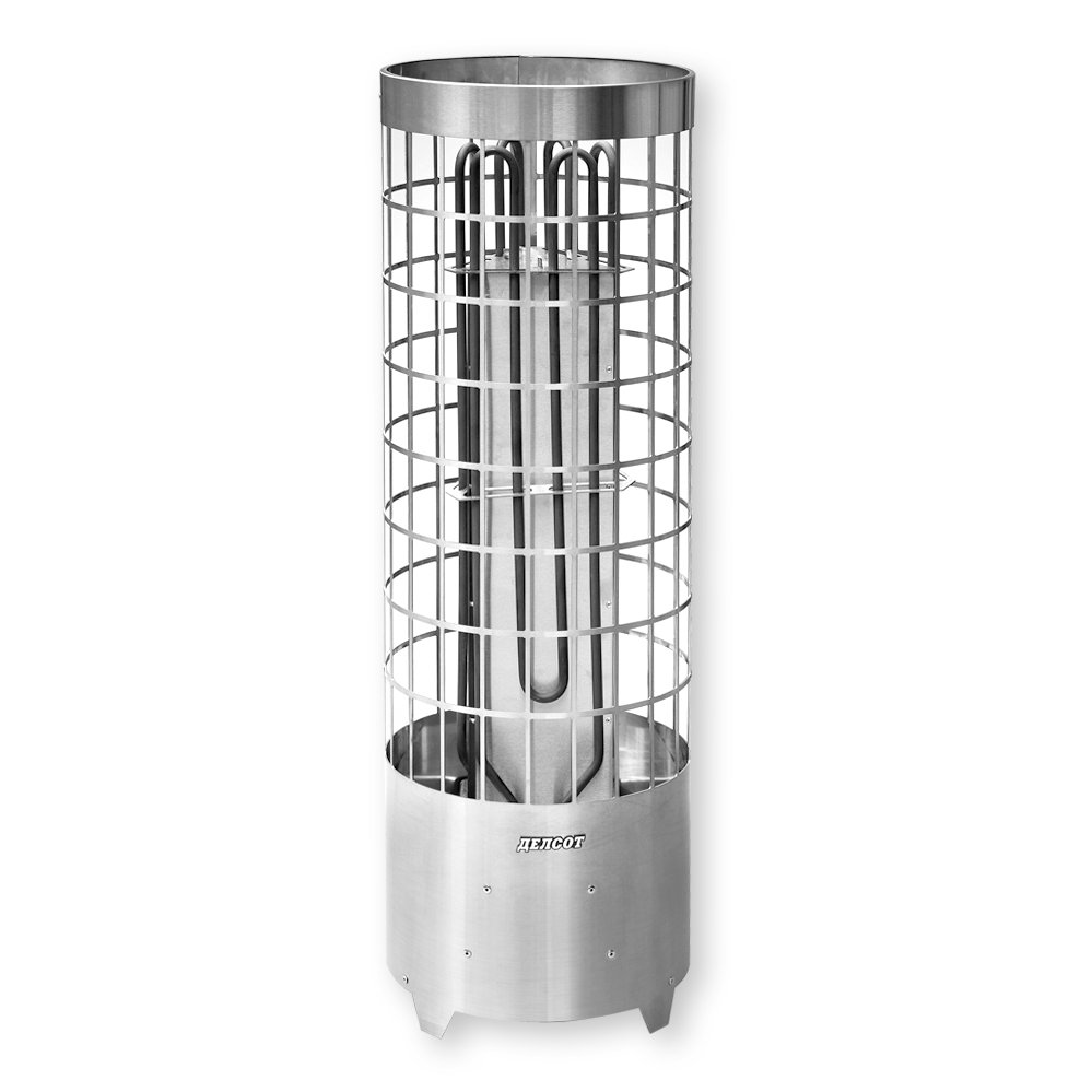 - цилиндрическая форма корпуса с прямоугольными вырезами по всей поверхности (сетчатая конструкция) способствует равномерному и эффективному нагреву помещения.