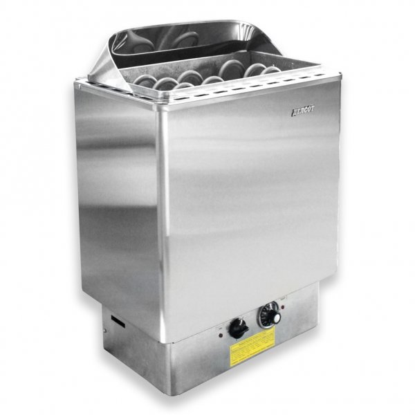 Корпус электрокаменки выполнен из высококачественной нержавеющей стали, что обеспечивает долговечность и устойчивость к агрессивным условиям эксплуатации. Оборудование рассчитано на работу в широком температурном диапазоне — от −10 °C до +120 °C.