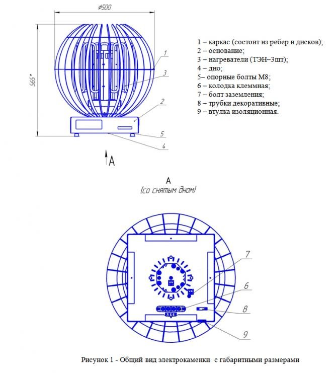 - трёх трубчатых нагревателей, вокруг которых размещаются камни (размер 5–10 см).