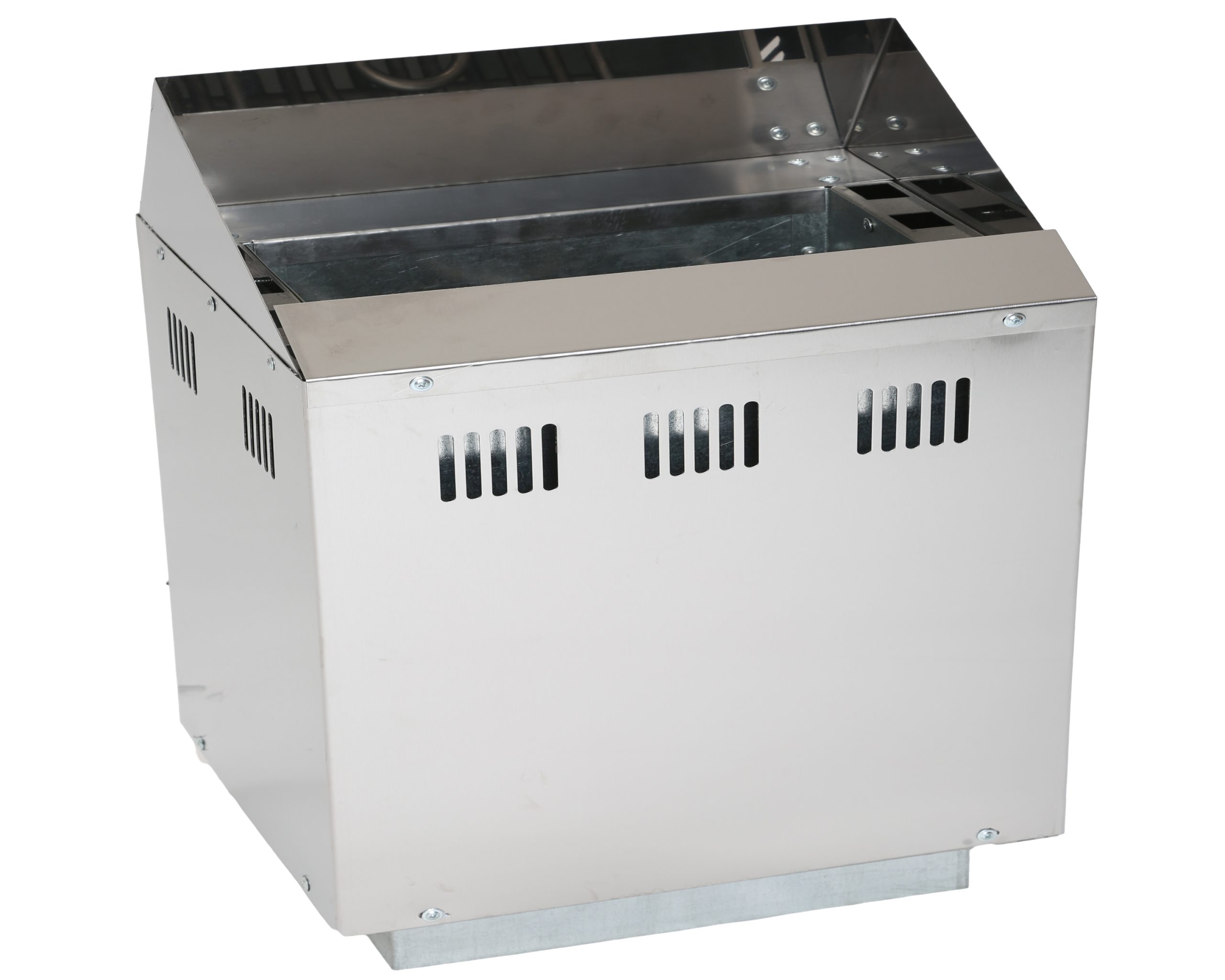 Корпус каменки изготовлен из зеркальной стали, внутри корпуса находится электрический нагревательный элемент. Нагревательный элемент (ТЭН) изготовлен из нержавеющей стали и рассчитан на долговременную эксплуатацию.