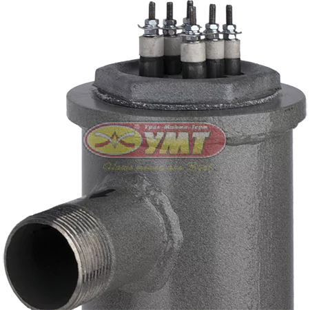 Основу конструкции составляет прочный корпус, внутри которого размещён блок трубчатых электронагревательных элементов (ТЭН). Система подключения реализована через два патрубка: нижний служит для подвода холодной воды, а верхний — для отвода уже подогретой. Такая схема обеспечивает стабильную циркуляцию теплоносителя и равномерный прогрев.