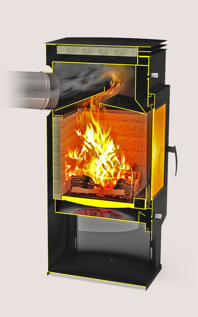 Благодаря продуманной конструкции и качественным материалам печь‑камин обеспечивает эффективный обогрев, сохраняя при этом компактные габариты и привлекательный внешний вид.