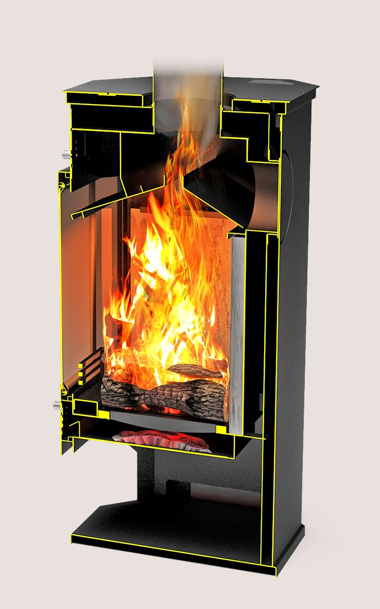 - Адаптивность: универсальность формы и варианты подключения дымохода делают модель подходящей для разных планировок помещений.
