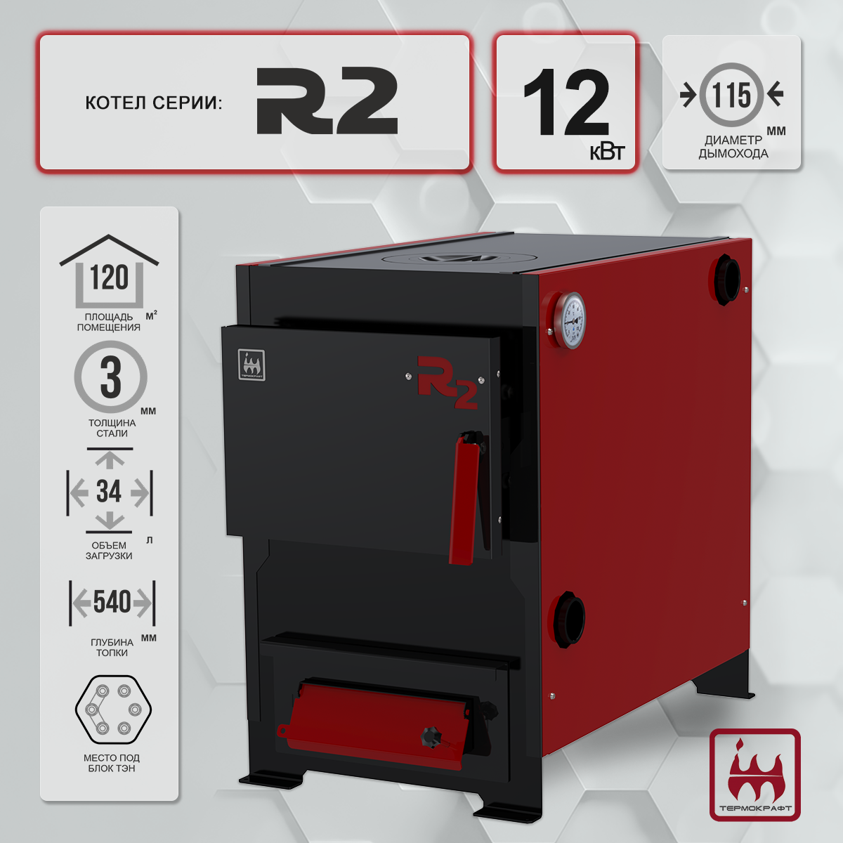 Котел отопительный R2 12 кВт с варочной поверхностью представляет собой эффективное решение для организации отопления частных домов и объектов коммунально-бытового назначения. Оборудование успешно интегрируется в системы водяного отопления с различными типами циркуляции и оснащено функцией приготовления пищи.