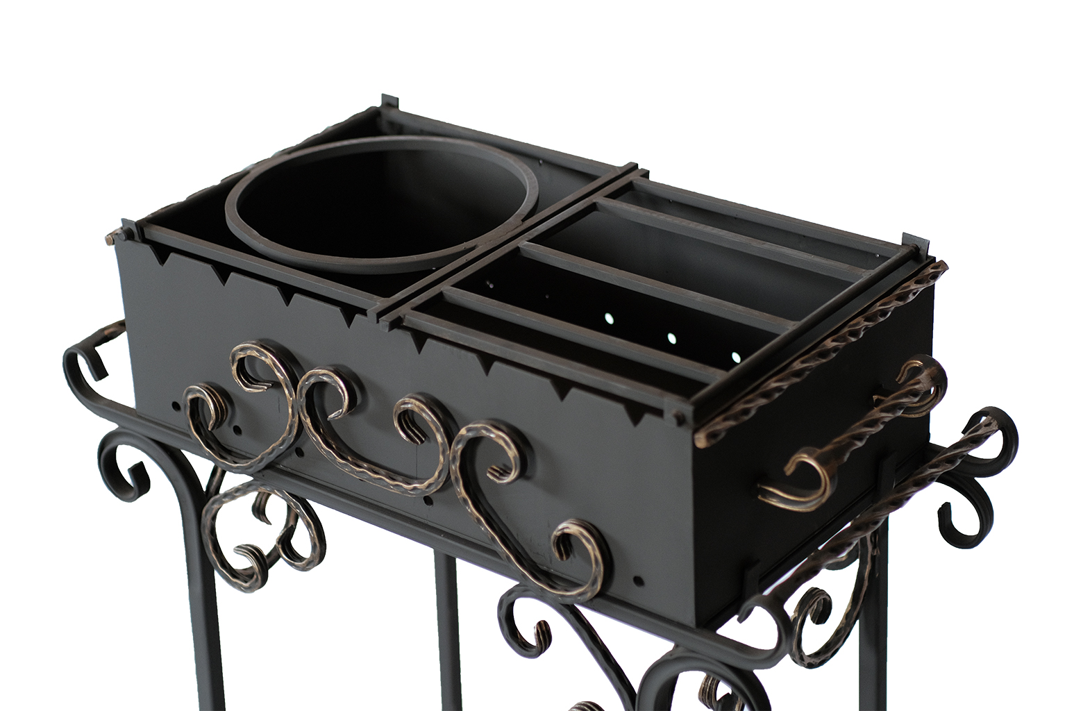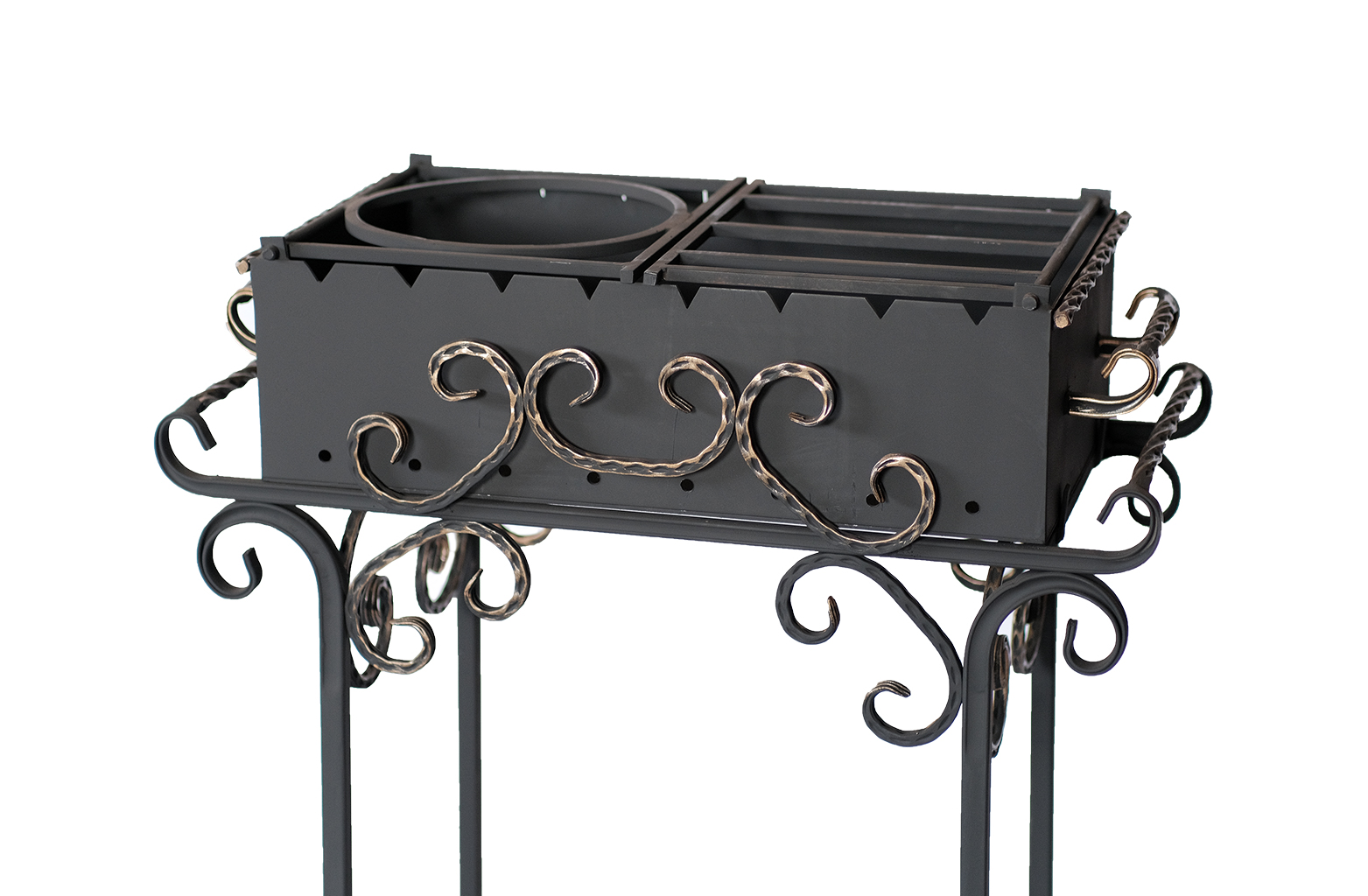 Мангал 01 — стационарная модель для приготовления пищи на открытом воздухе. Изделие выполнено из жаростойкой стали, что обеспечивает его долговечность и устойчивость к высоким температурам.
