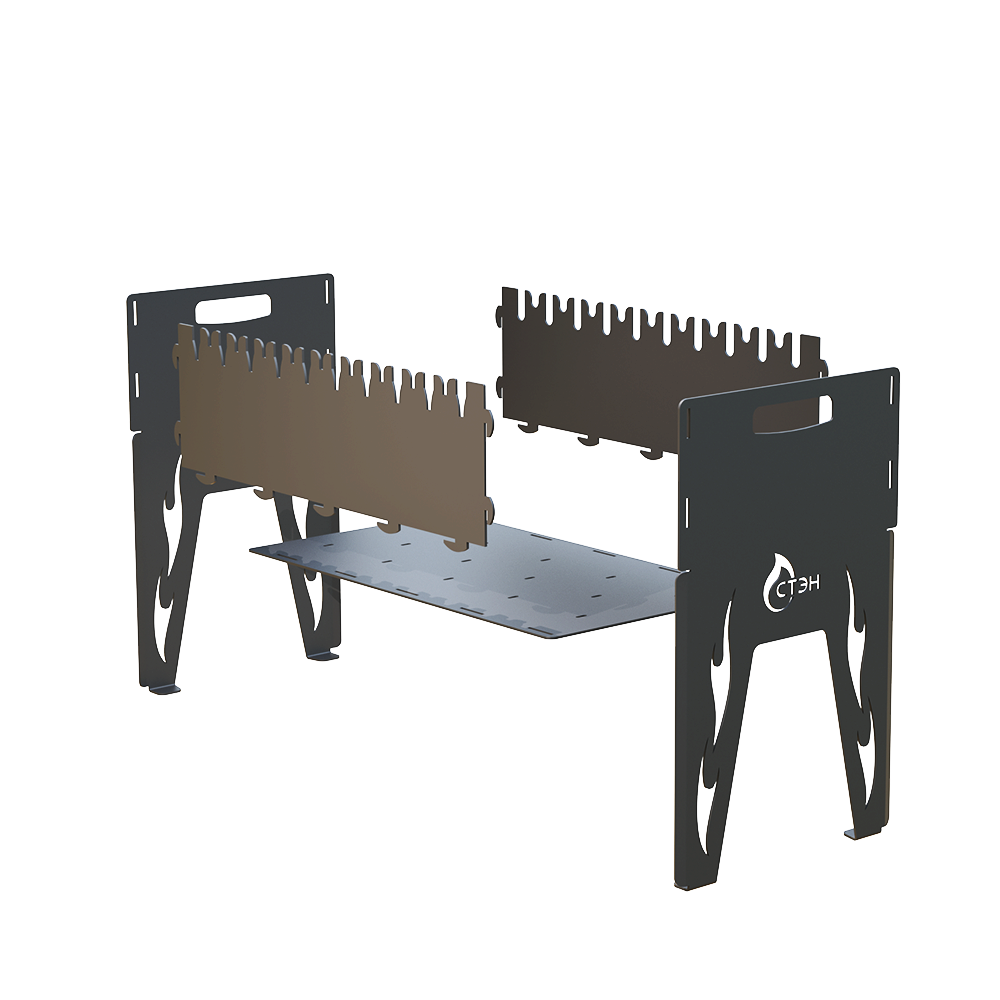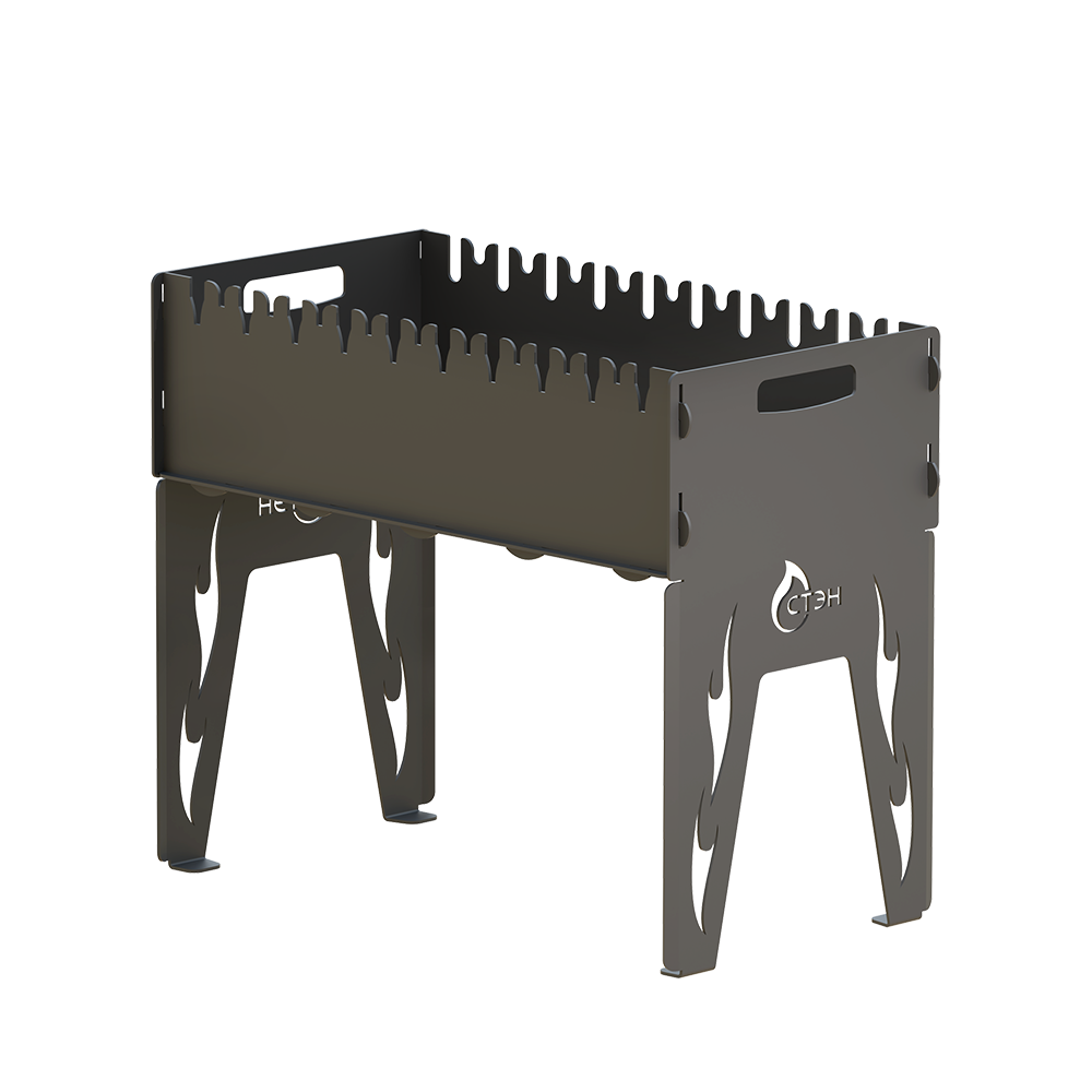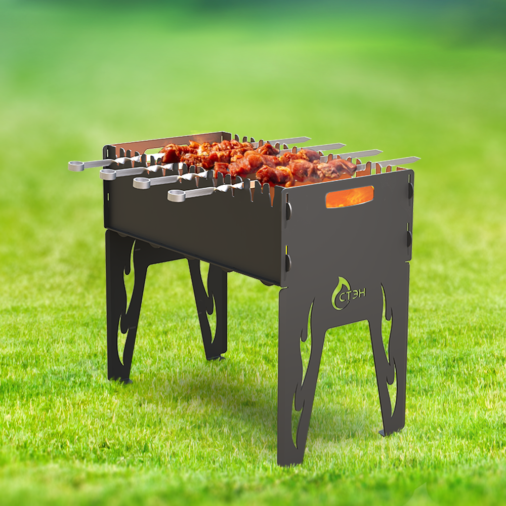 Удобный мангал, на котором можно использовать шампуры, решетку для барбекю. Большая толщина стенок (3-миллиметровая сталь) уменьшает деформацию металла и увеличивает срок службы мангала, а также делает жар углей более равномерным.