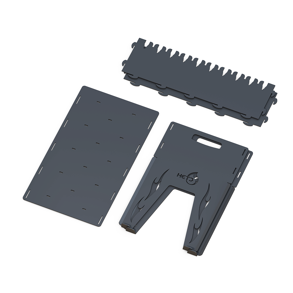 Имеются ручки для переноски мангала в собранном виде. Имеется два уровня установки шампуров, — это удобно при использовании разного топлива (дров или древесного угля). Отдельно комплектуется сумкой.