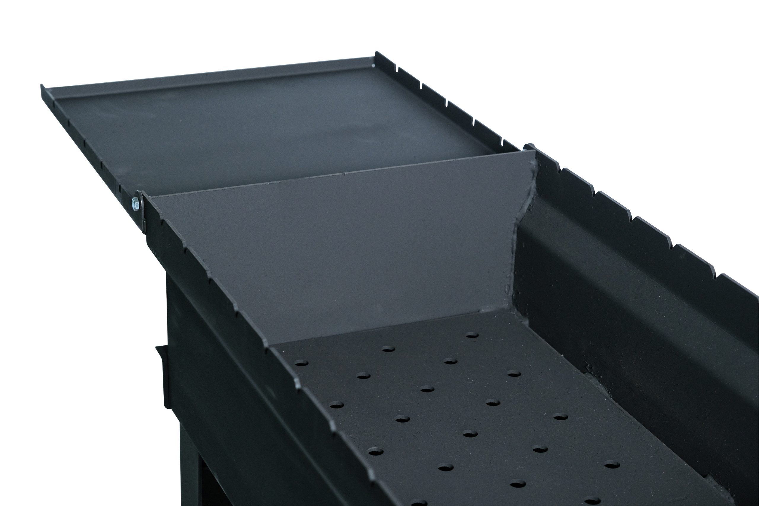 - Практичность: две крышки выполняют функцию закрытия мангальной части и подставок для аксессуаров, избавляя от необходимости искать дополнительное место для их размещения.