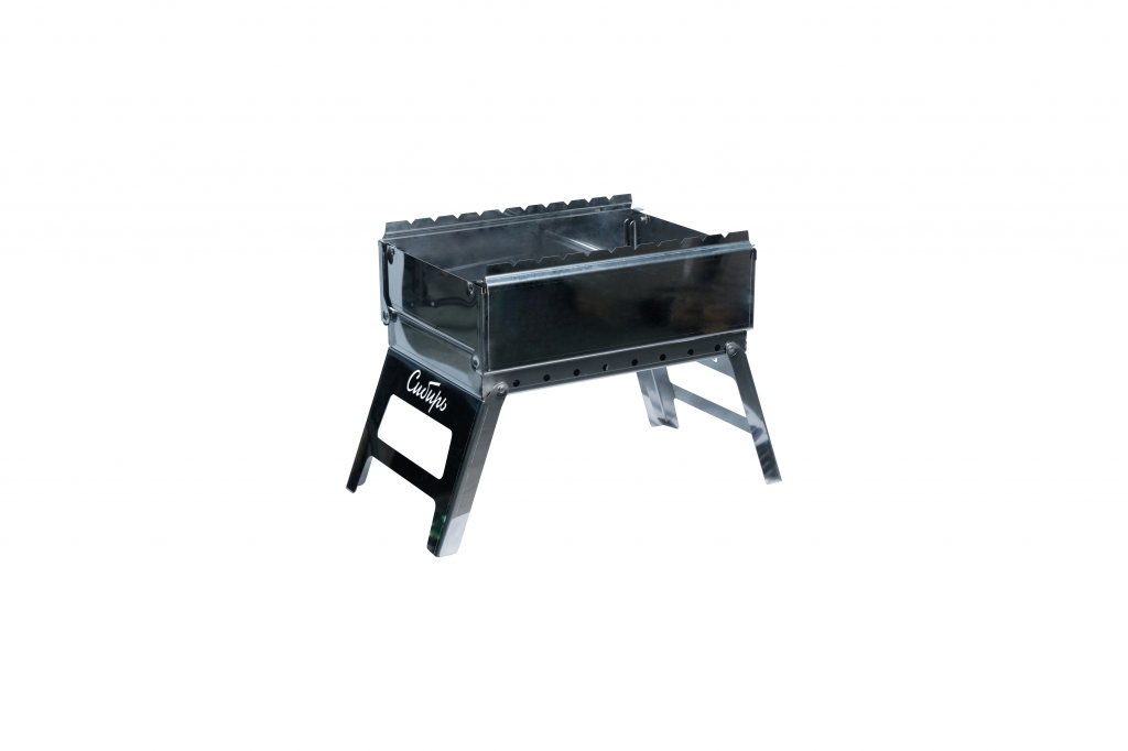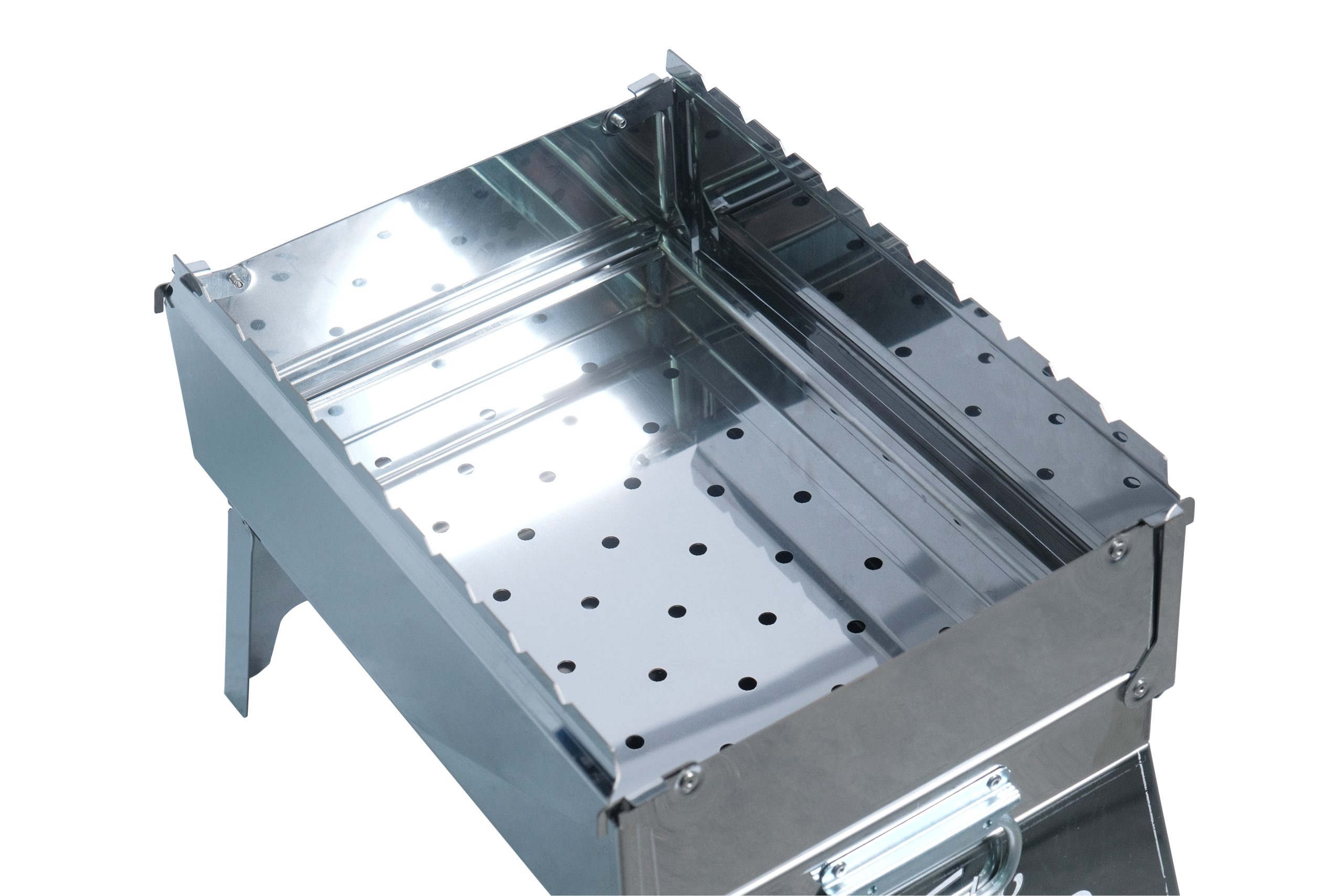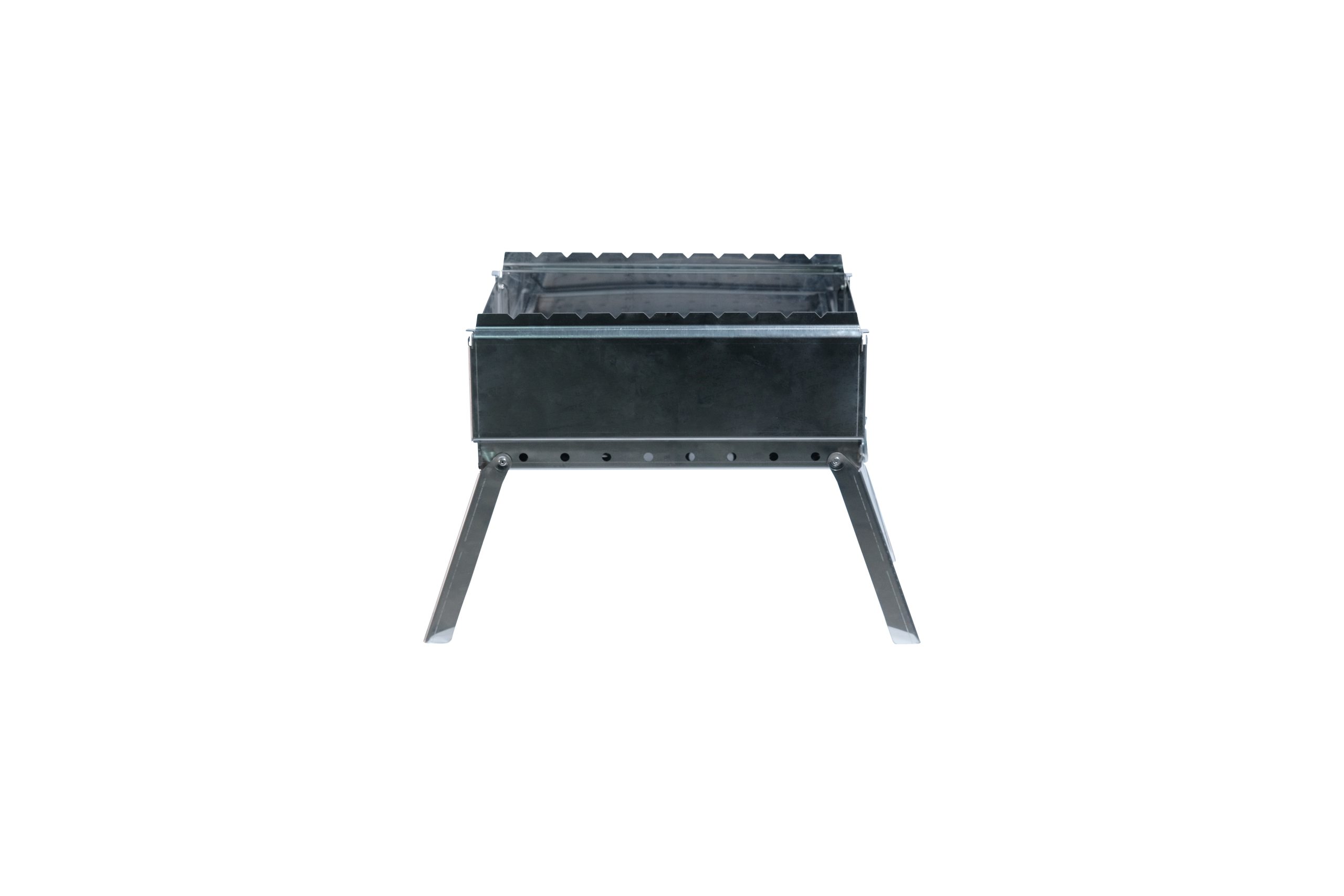 Конструкция мангала выполнена из нержавеющей стали марки AISI 430 толщиной 1,5 мм, что гарантирует устойчивость к коррозии и длительный срок службы. В сложенном виде мангал занимает минимум места: его габариты составляют 327 × 470 × 90 мм, а в рабочем состоянии — 352 × 570 × 426 мм. Вес изделия — 9,5 кг, что позволяет легко переносить его вручную.