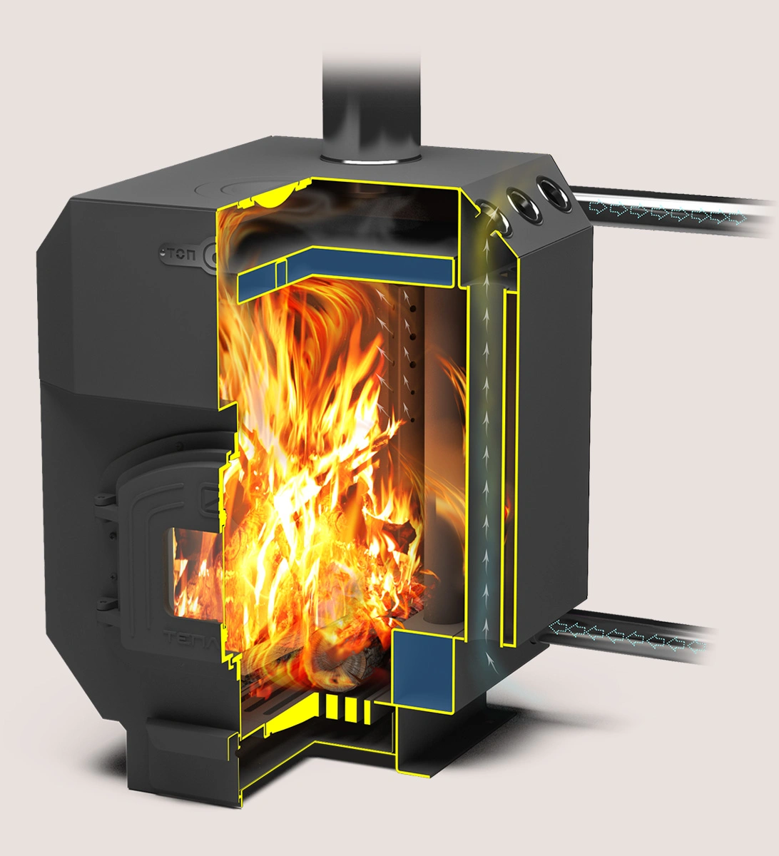 - Надёжность: топка из конструкционной стали толщиной 3 мм и конвективные трубы толщиной 3,5 мм гарантируют долгий срок службы.