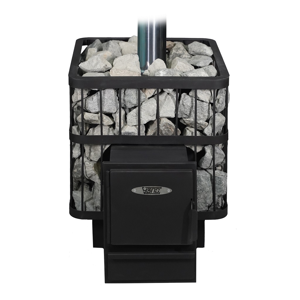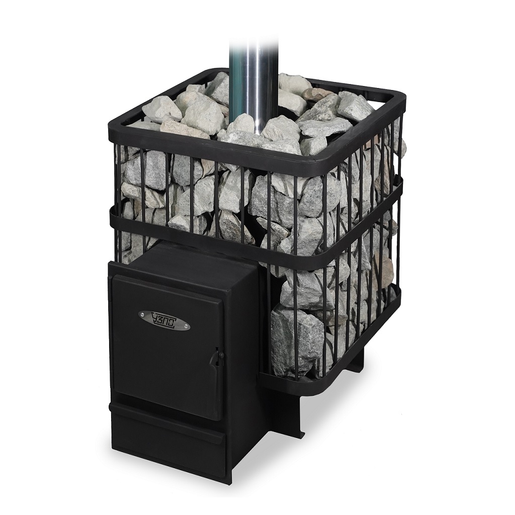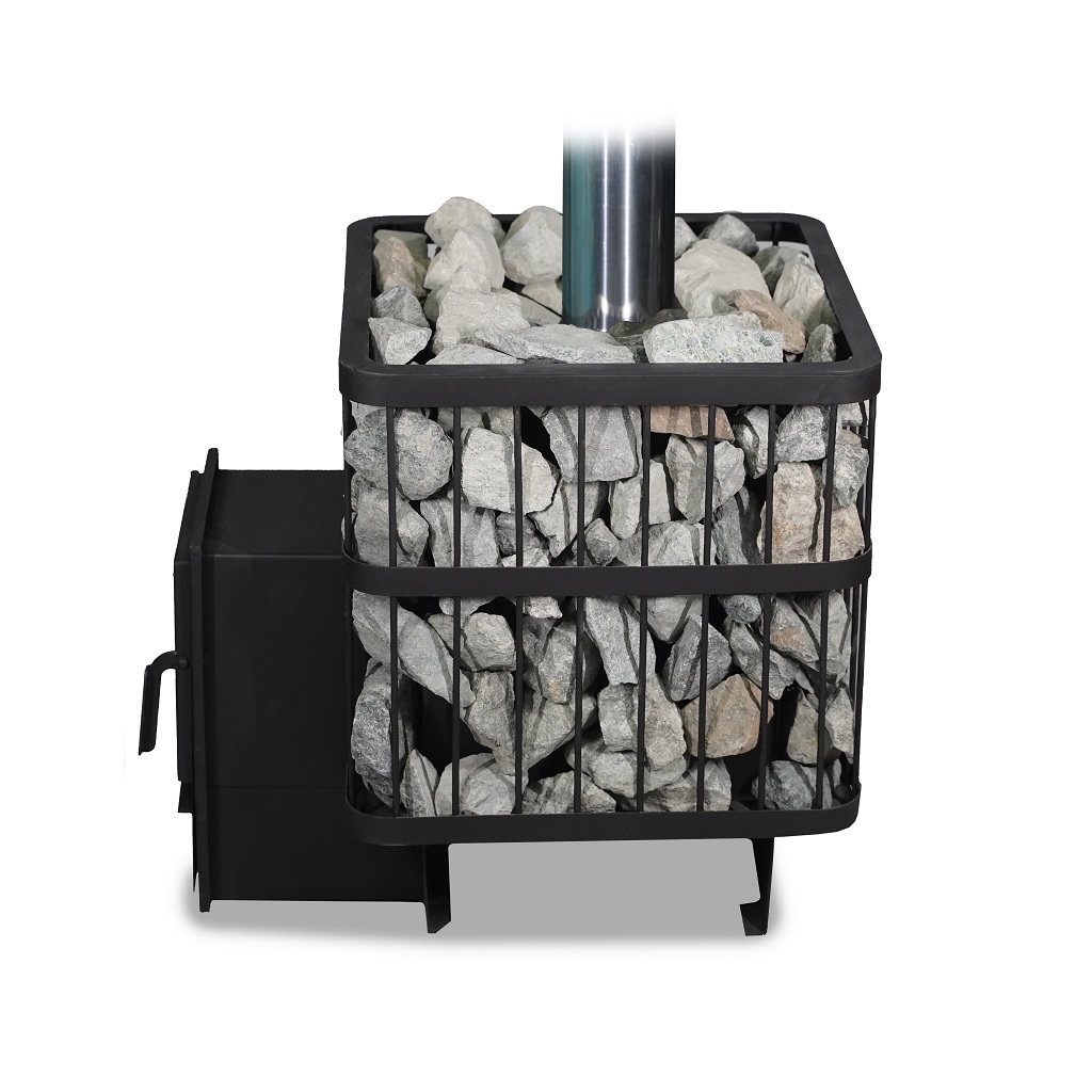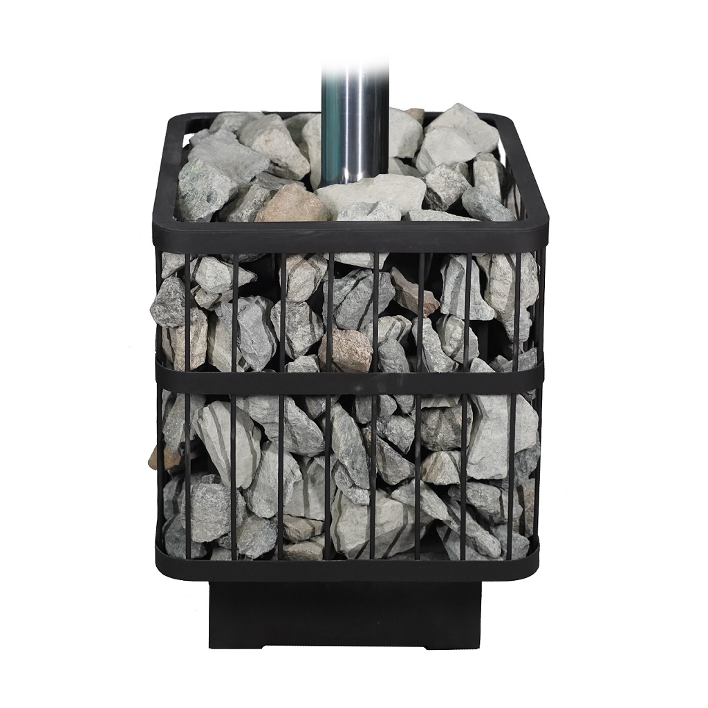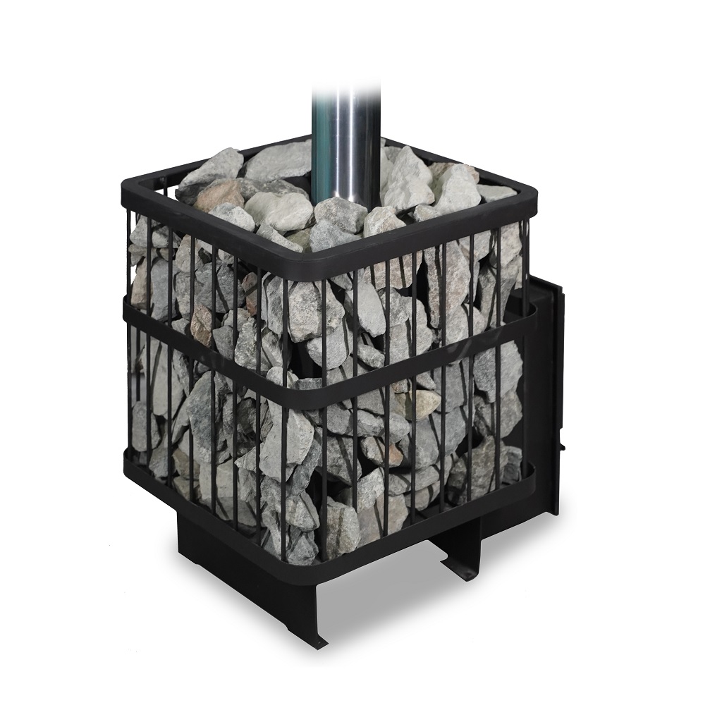 - Вместительная каменка — кожух‑сетка вмещает до 65 кг камней, что обеспечивает эффективный и продолжительный прогрев парного помещения.