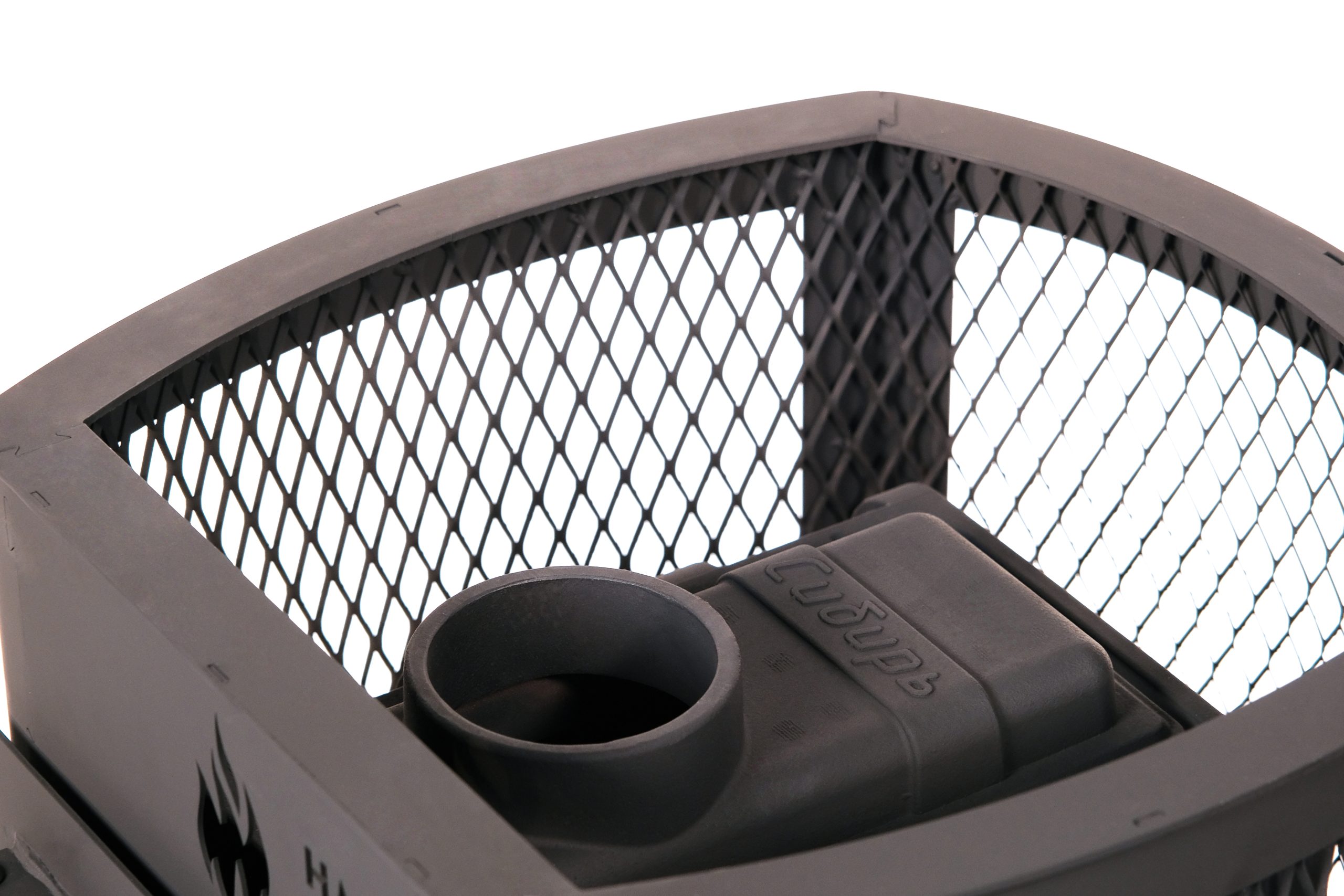 Печь банная чугунная «Сибирь-15». Чугунная дверца без ВТК (Сетка) — новинка в производственной линейке завода «НМК». Модель разработана для эффективного обогрева парильного помещения и смежных зон объёмом от 8 до 15 м³.