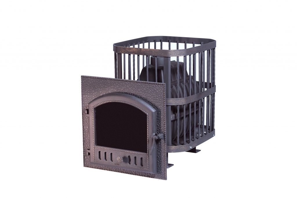 Печь банная чугунная «Сибирь-24». Каминная дверца «Сибирь» 545х545 (Сетка) — современная модель в линейке чугунных печей от завода «НМК». Устройство предназначено для эффективного обогрева парильного помещения и смежных зон бани объёмом от 12 до 24 м³.