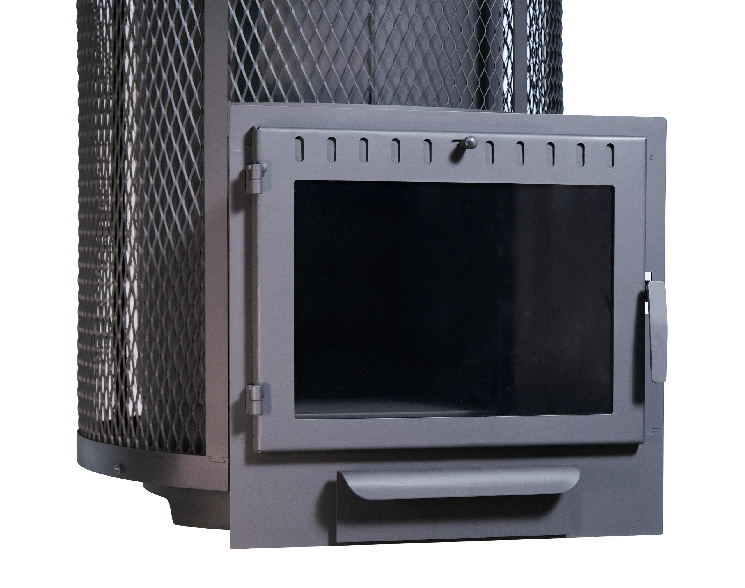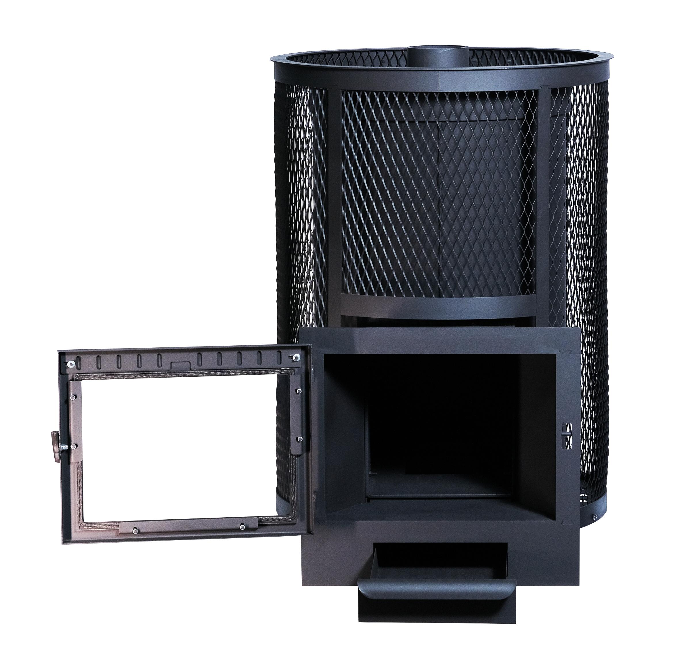 Ключевой элемент модели — закрытая каменка с винтовой системой дымохода. Такая конструкция способствует равномерному нагреву каменки: внутри создаётся высокая температура, которая быстро прогревает камни и долго удерживает тепло. Это позволяет поддерживать оптимальный микроклимат в парной на протяжении длительного времени.