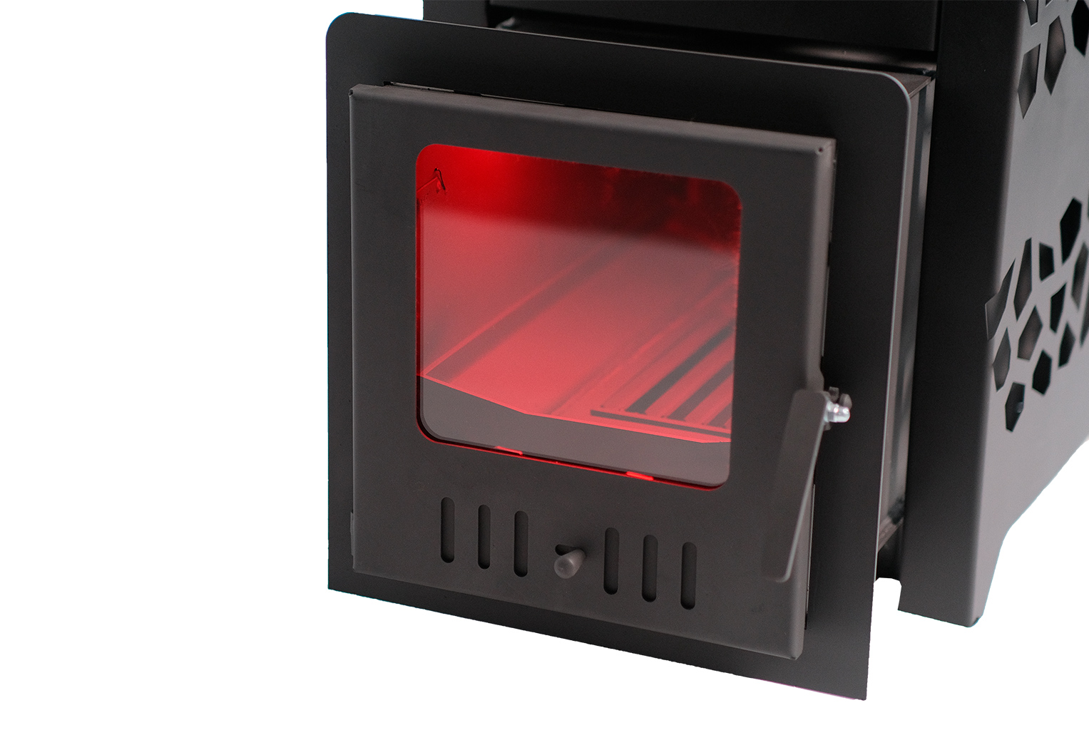 - Информативность: через панорамное стекло удобно наблюдать за процессом горения и контролировать закладку дров.