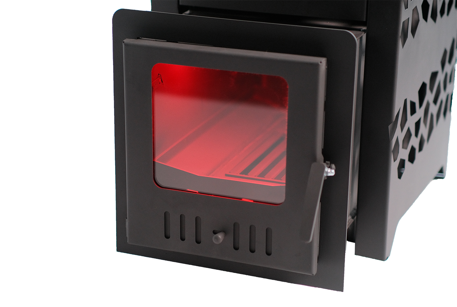 - Информативность: панорамное стекло позволяет визуально контролировать процесс горения и закладку дров.