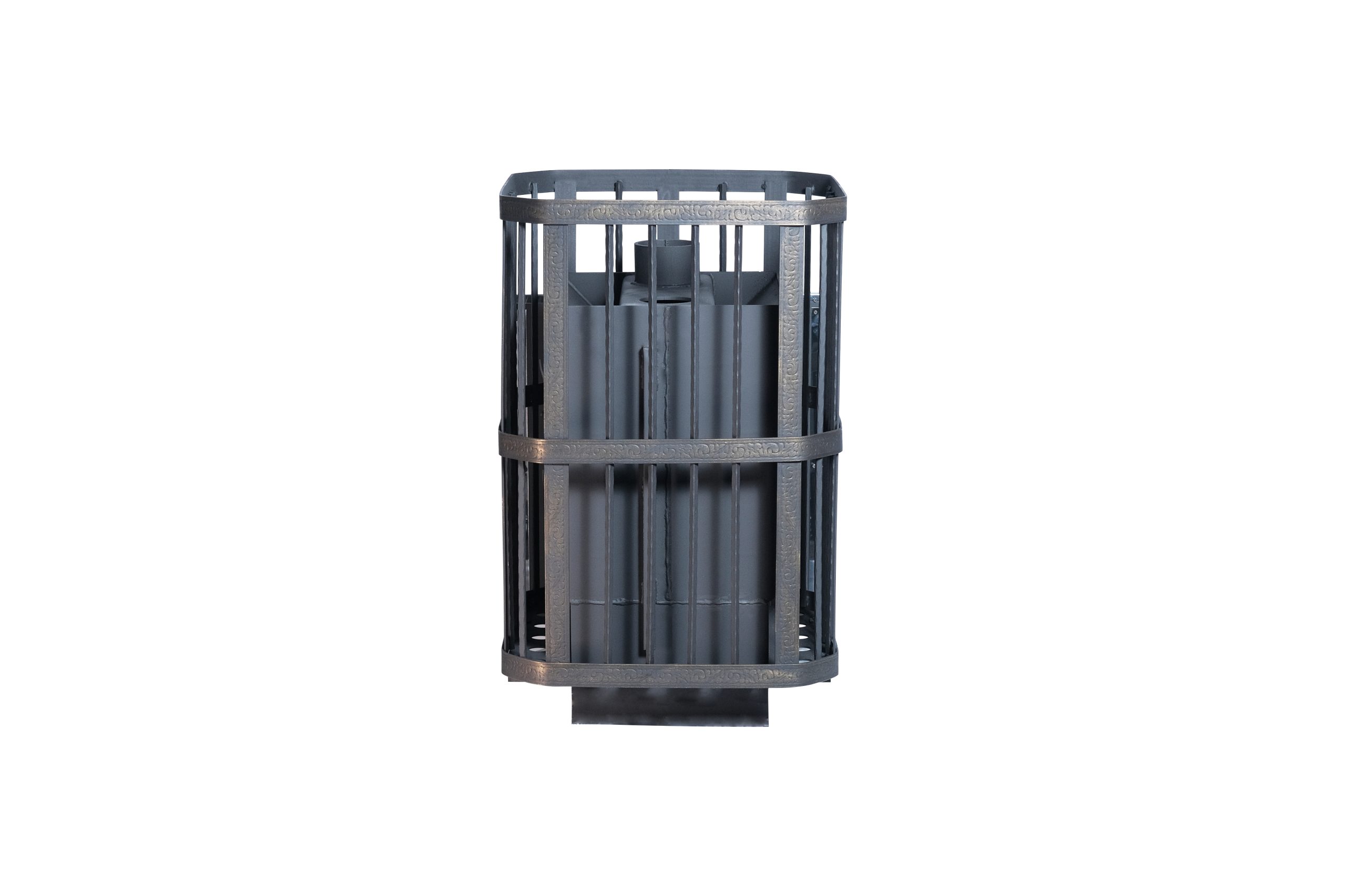 Печь рассчитана на обогрев парильного и смежного помещений объёмом от 12 до 24 м³. Её конструкция воплощает гармоничное сочетание прочности металла и природной энергии камня, обеспечивая эффективный и комфортный прогрев пространства.