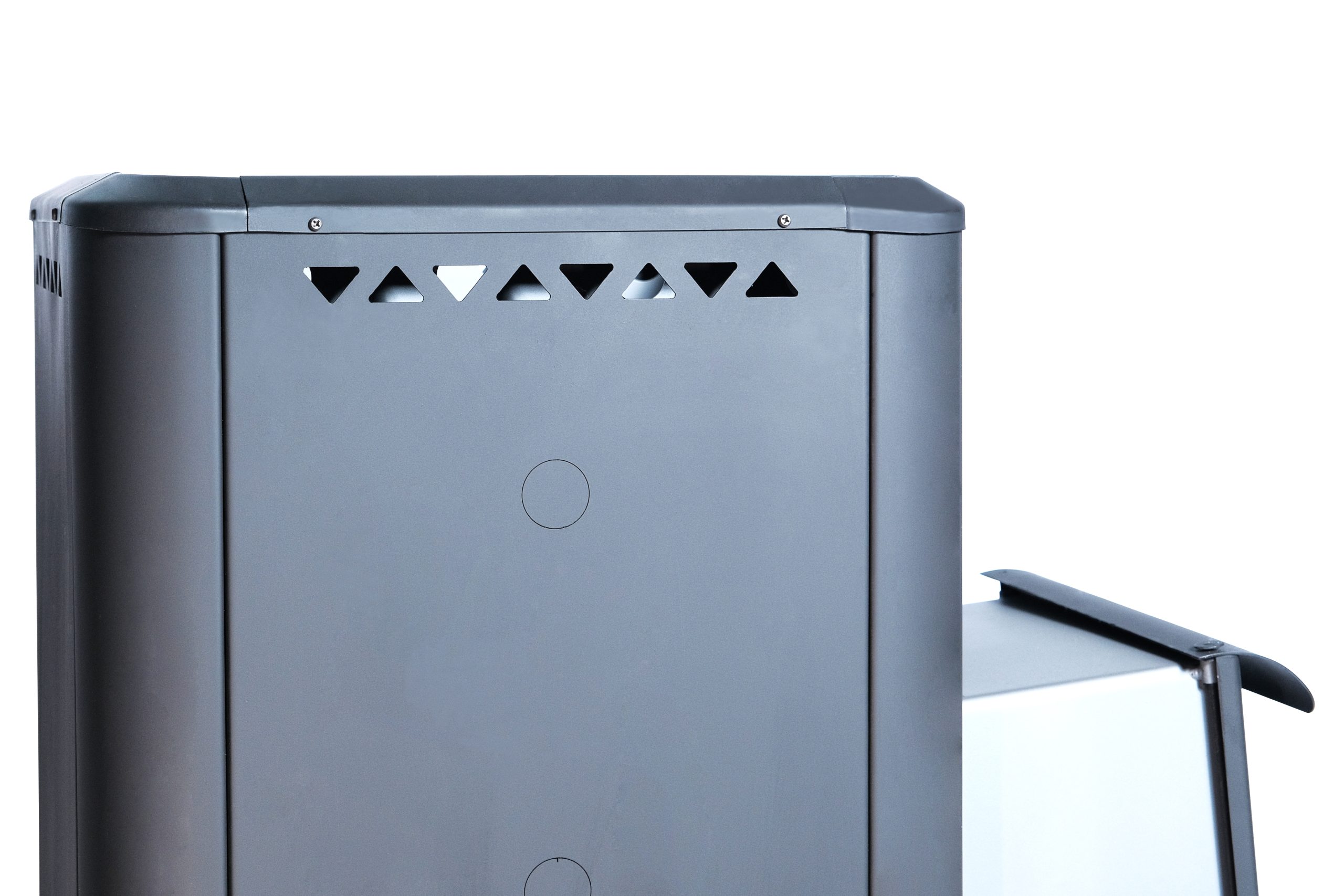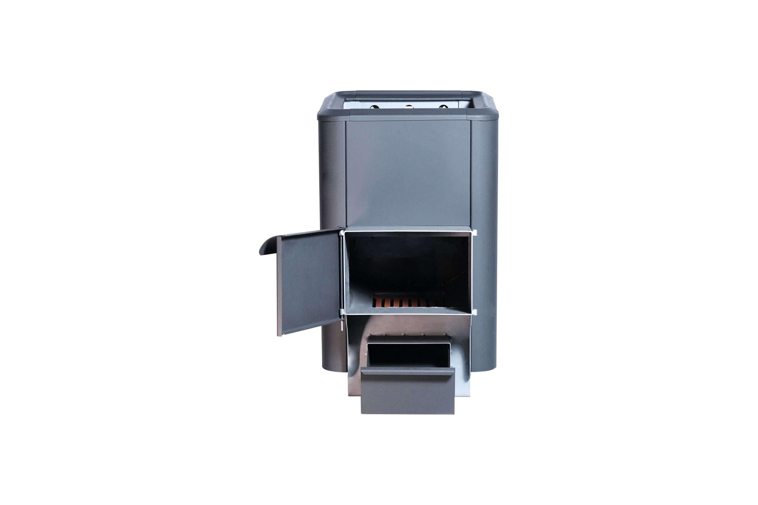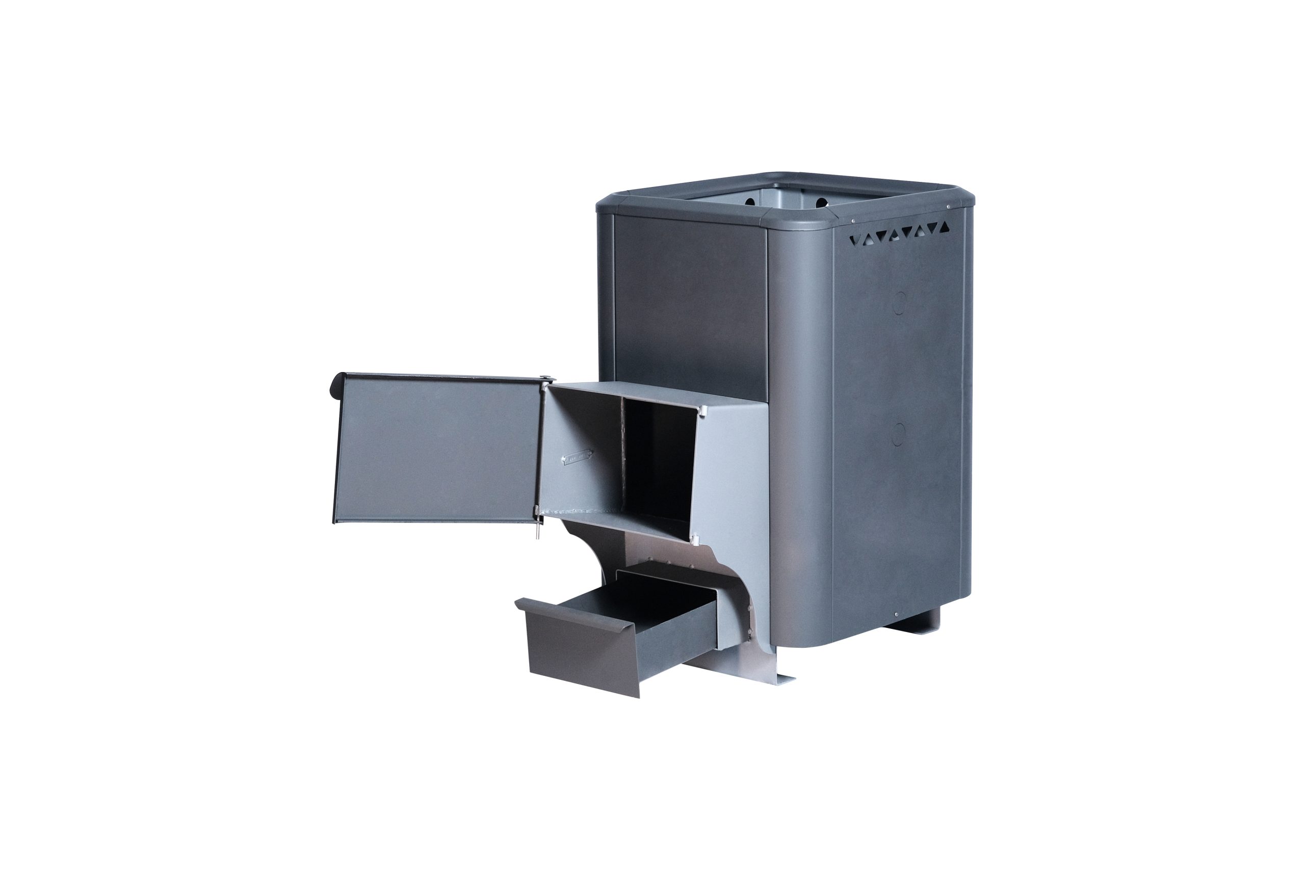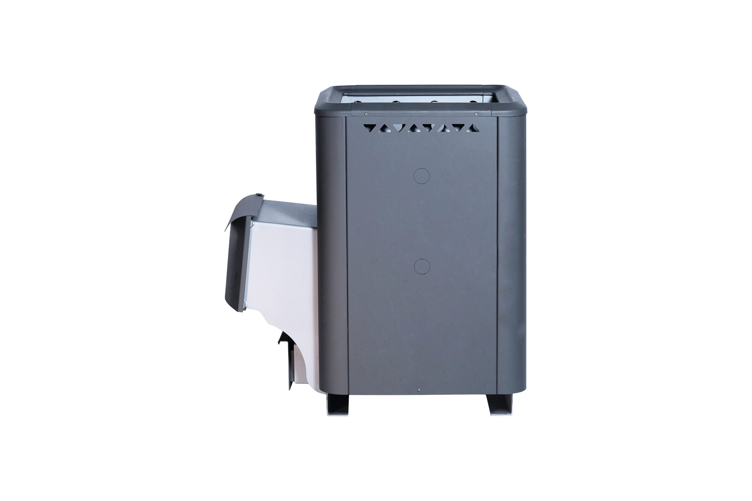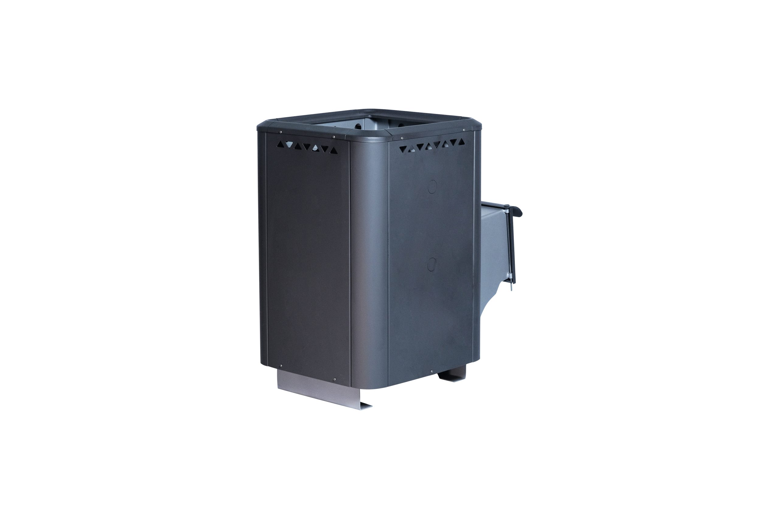 - Технологичность: продуманная конструкция с смещённым вперёд патрубком дымохода облегчает размещение камней в каменке и улучшает условия парения.
