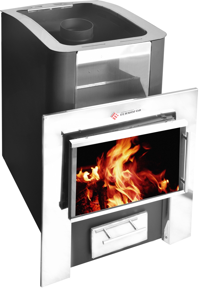 - Стеклянная дверца — позволяет наблюдать за процессом горения, создавая атмосферу настоящей русской бани.