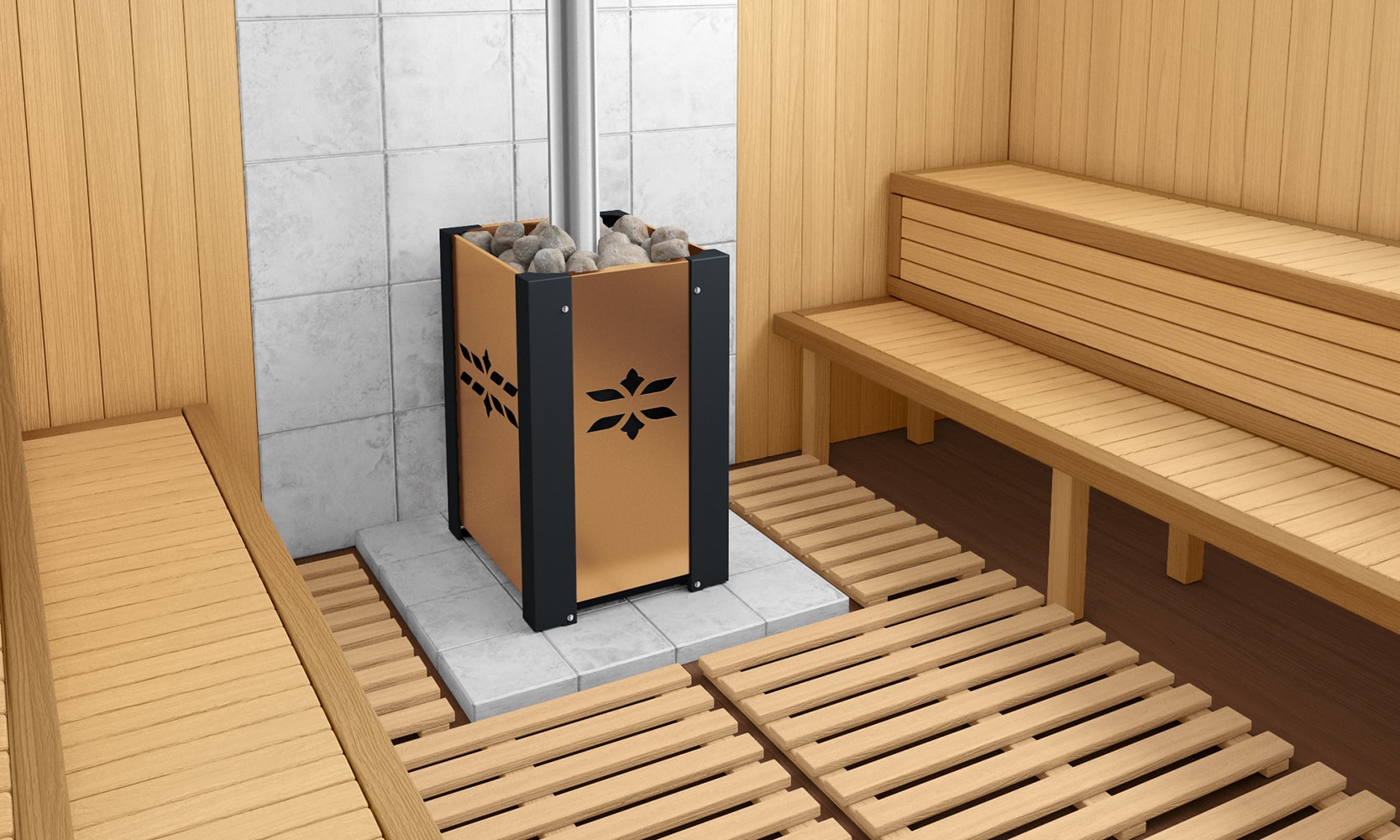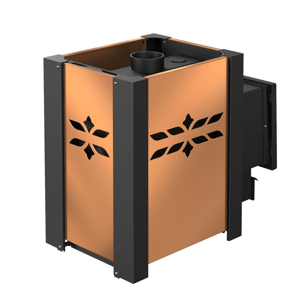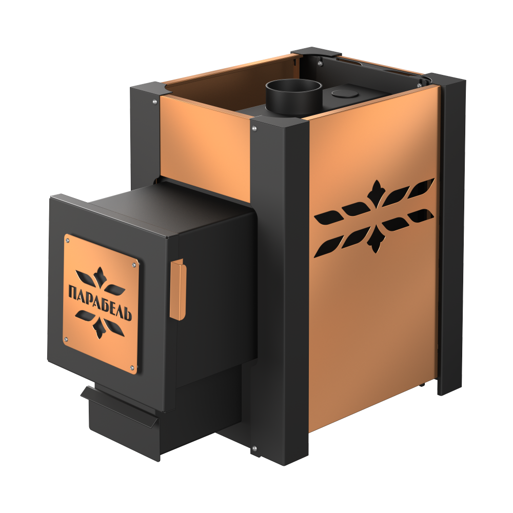 Каменка вмещает большой объем теплоаккумулирующих элементов. Разборная конструкция ограждающего кожуха существенно облегчает транспортировку печи.