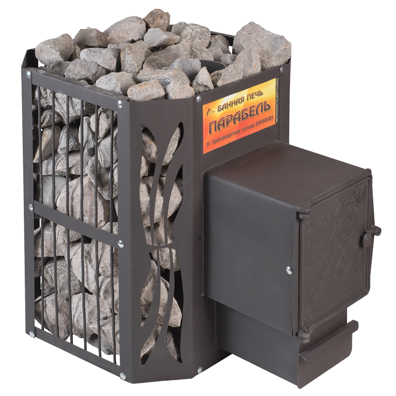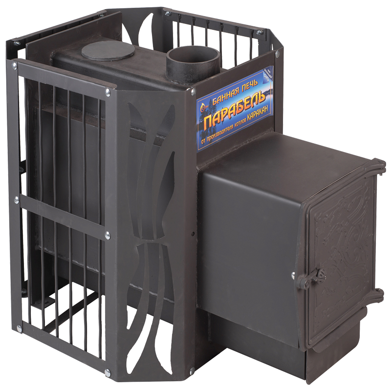 Топка печи изготавливается из стального листа толщиной 6 мм. Каменка вмещает большой объем теплоаккумулирующих элементов. Разборная конструкция ограждающего кожуха существенно облегчает транспортировку печи.