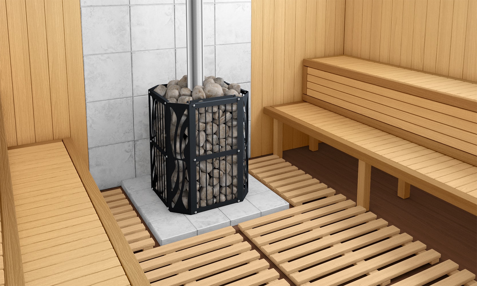 Наличие выносного предтопочного тоннеля предусматривает установку печи в парилке, с выходом топки в смежное помещение. Топочная дверца — с конструктивной возможностью перенавески.