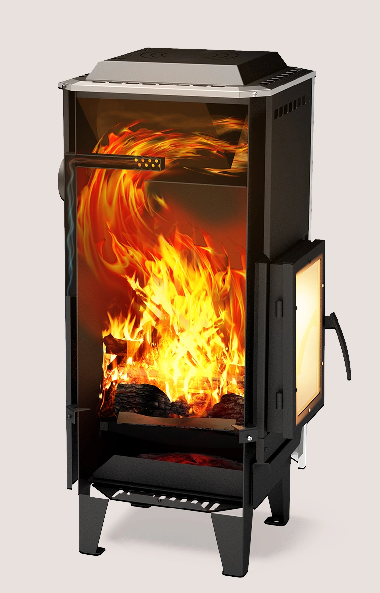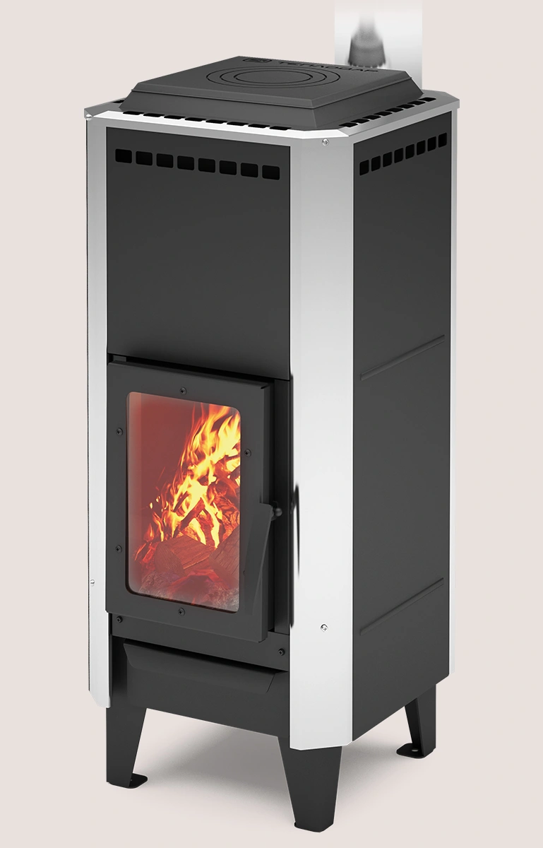 - Удобство: вертикальная загрузка дров и наличие чугунной плиты для приготовления пищи обеспечивают комфорт в эксплуатации.