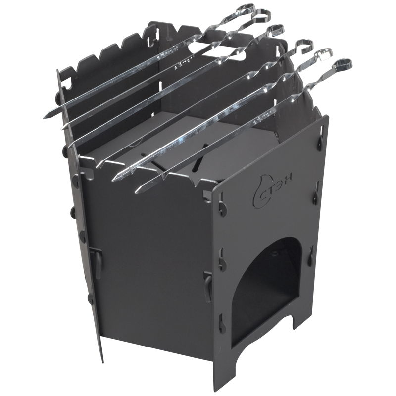 Печь может использоваться как уличный очаг. Изготавливается из стали толщиной 3 мм. Печь комплектуется* накладным кольцом и сумкой.