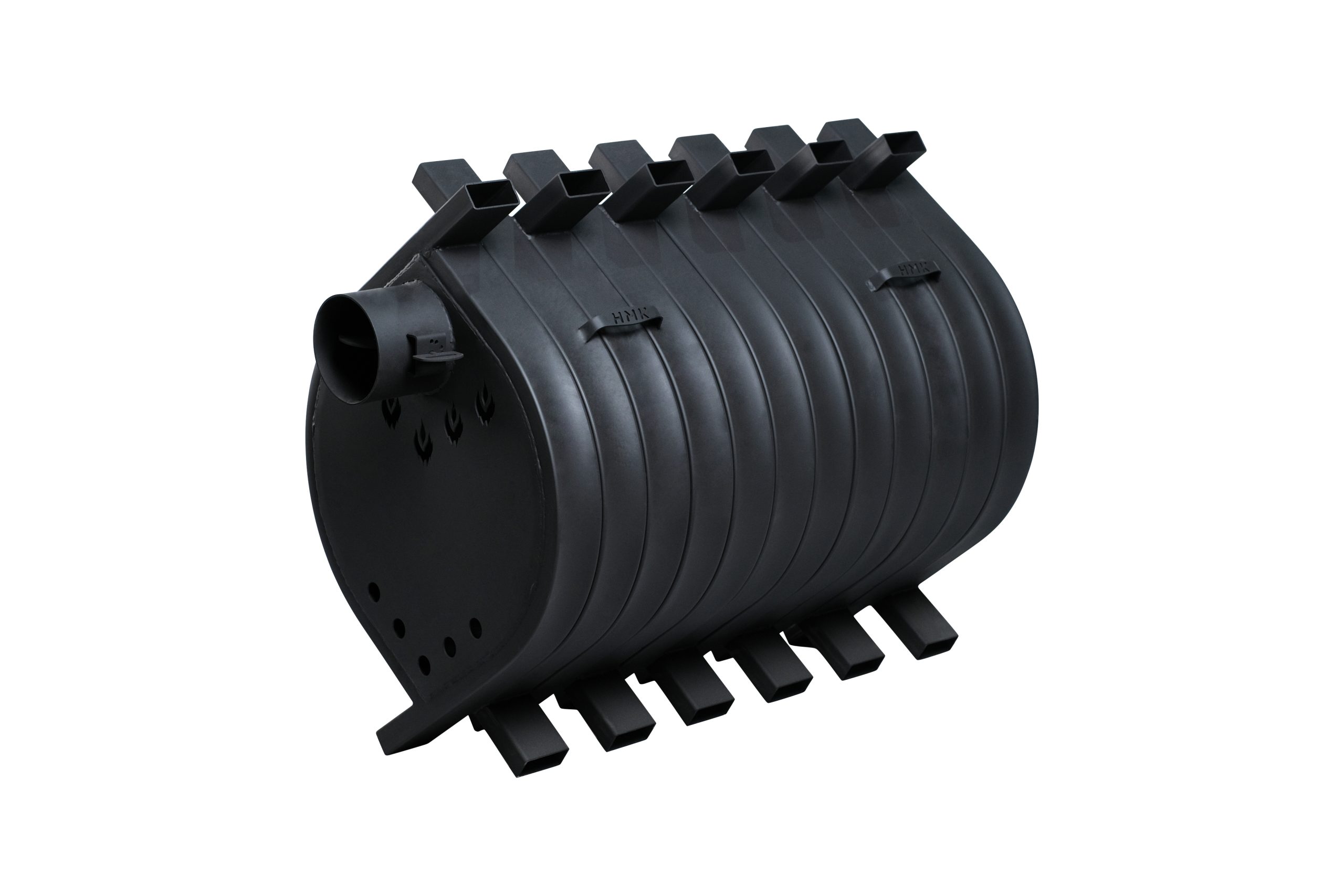 Принцип работы печи основан на естественной конвекции: холодный воздух из помещения поступает в нижние отверстия теплообменных труб, нагревается и возвращается обратно через верхние отверстия с температурой 60–80 °C. Благодаря продуманной конструкции с многочисленными теплообменными трубами достигается равномерное распределение тепла по всему объёму помещения.