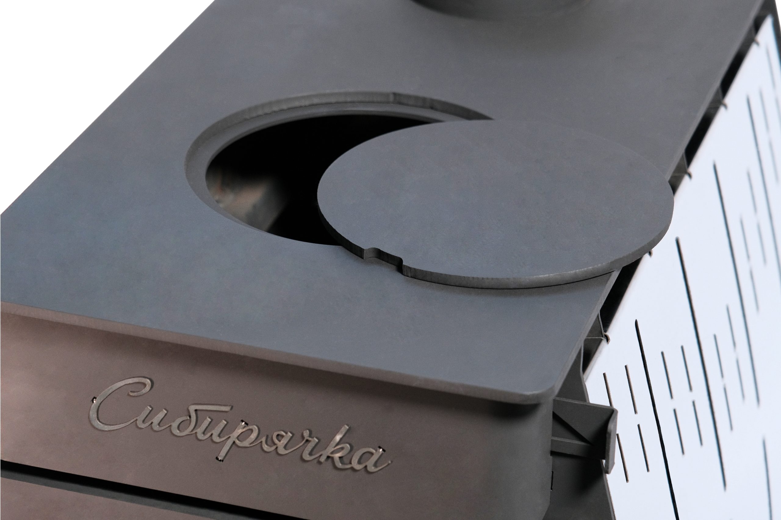 Ключевая особенность печи — наличие варочной плиты, которая позволяет не только обогревать помещение, но и готовить пищу или нагревать воду. Это делает прибор многофункциональным и особенно удобным для загородных домов, где требуется комбинированное решение для отопления и бытовых нужд.