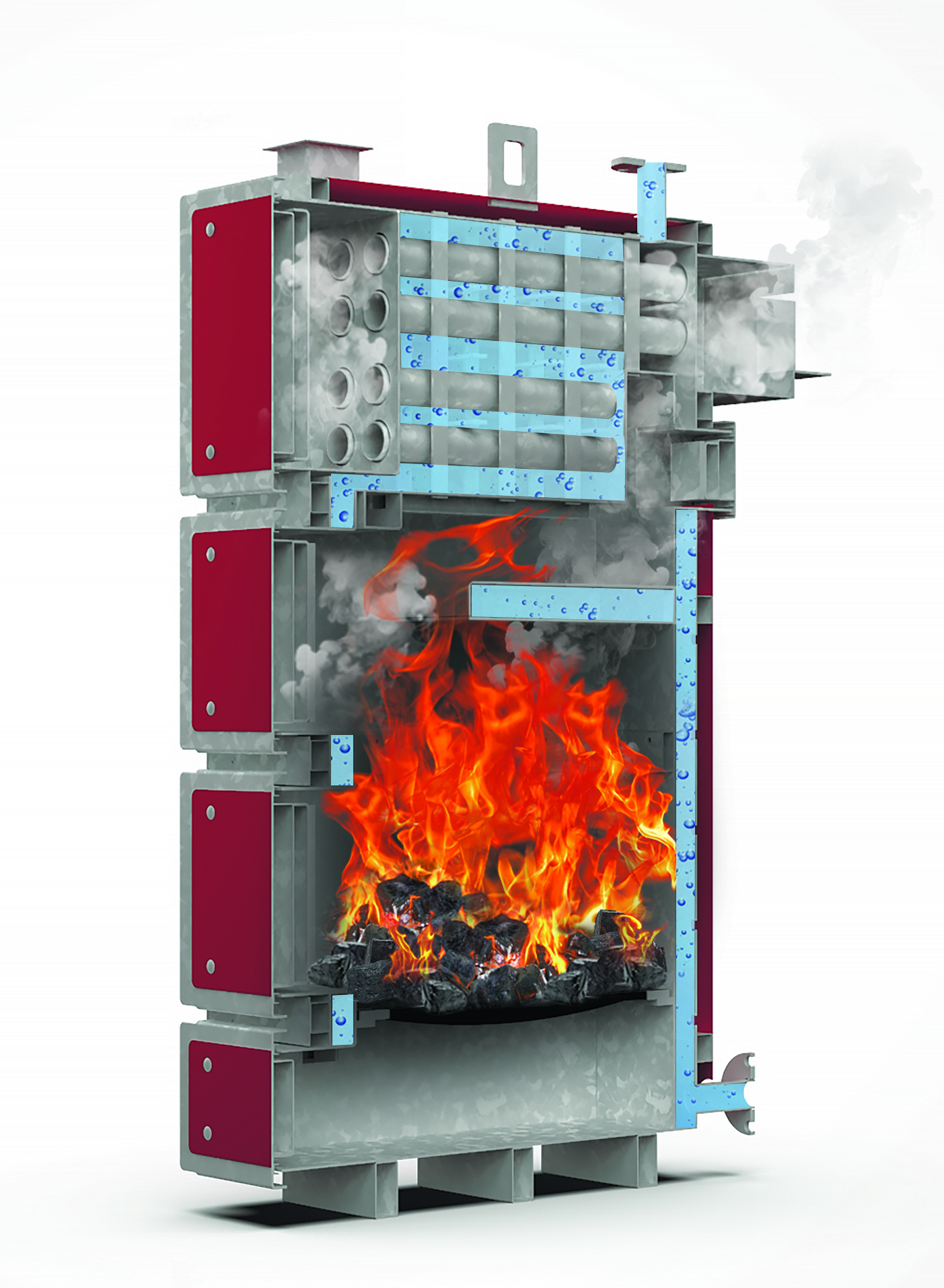 - Универсальность топлива: возможность использования любого вида твёрдого топлива — угля, древесины и др.