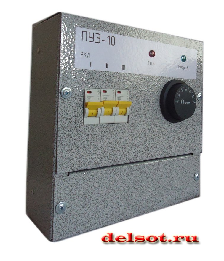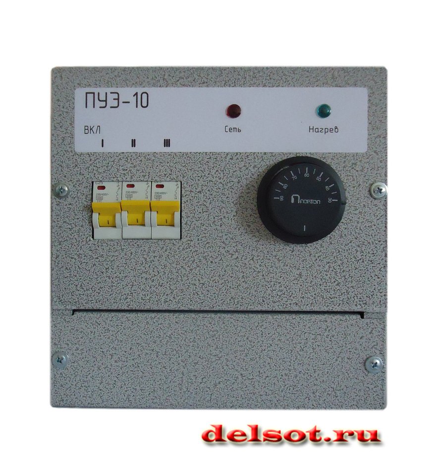 Пульт управления электронагревателями ПУЭ-10 представляет собой пульт управления для электрооборудования, обеспечивающего поддержание заданной температуры теплоносителя. Рабочий диапазон температур составляет от 0 до 85 °С.
