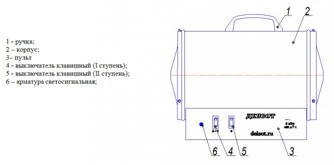 Эксплуатация прибора допускается только под наблюдением. Конструктивно тепловентилятор выполнен в виде трубчатого корпуса, внутри которого размещены трубчатые электронагреватели (ТЭН), вентилятор с электродвигателем и блок управления.