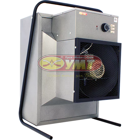 Тепловентилятор ЭК-42 представляет собой эффективное нагревательное устройство, предназначенное для обогрева воздушных потоков. Основу конструкции составляет прочный корпус, внутри которого размещены оребрённые трубчатые нагреватели (ТЭН) и электродвигатель с осевым вентилятором. Такая компоновка обеспечивает равномерный прогрев воздуха при его прохождении через устройство.