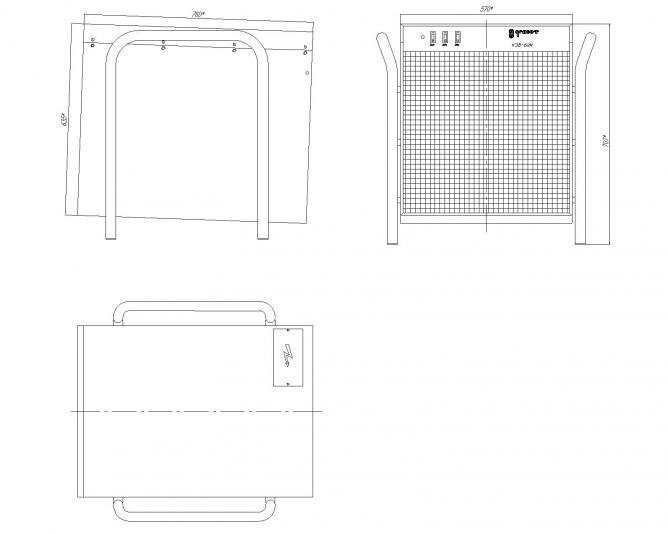 Конструкция устройства включает прочный корпус, внутри которого размещены оребрённые трубчатые электронагреватели (ТЭНР), двигатель с вентилятором и удобный пульт управления. Безопасность работы обеспечивается встроенным термовыключателем, предотвращающим перегрев оборудования.