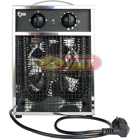 Тепловентилятор «Кузя» КЭВ-3 — это эффективное отопительное устройство, выполненное в прочном металлическом корпусе. Внутри корпуса размещены осевой вентилятор и электронагреватели (ТЭНы), обеспечивающие равномерный прогрев воздушного потока. При работе прибора воздух, проходя через устройство, обдувает ТЭНы и нагревается до заданной температуры, создавая комфортный микроклимат в помещении.