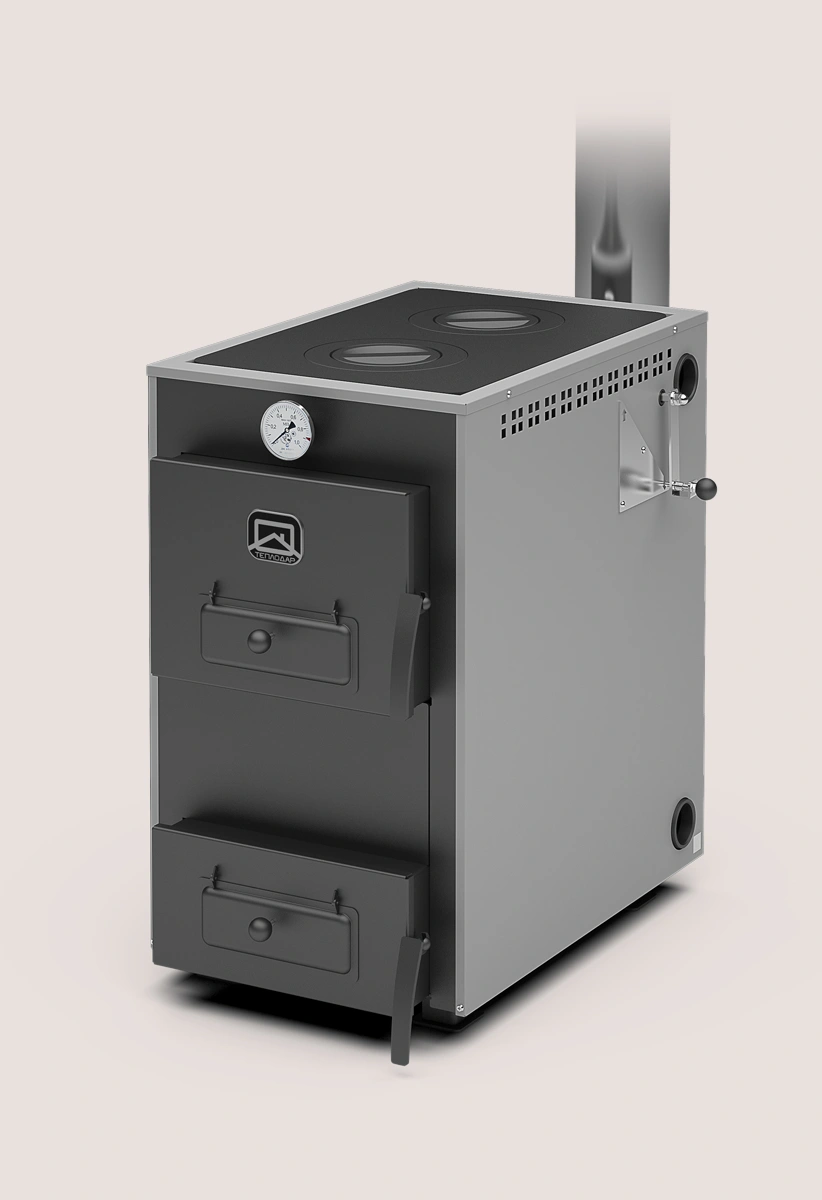 - Информативность: биметаллический термометр на фронтальной части котла позволяет оперативно отслеживать температуру теплоносителя.