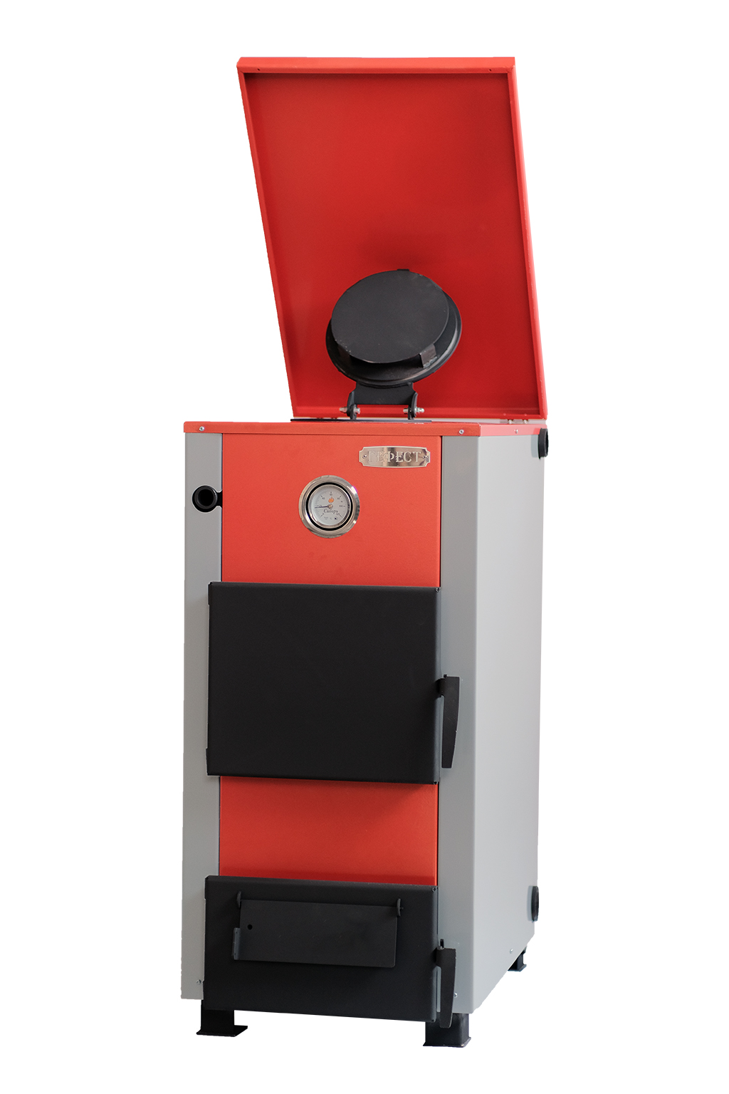- Удобство: загрузочный люк в верхней части котла упрощает закладку топлива, а энергонезависимый терморегулятор с воздушной заслонкой обеспечивает простое управление подачей воздуха.