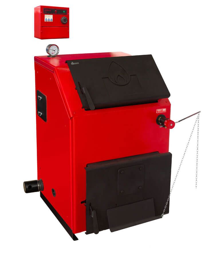 - Надёжность, долговечность и безопасность. Топочная камера и отражатели изготовлены из толстолистовой стали толщиной 4 мм. Усиленные загрузочная и топочная двери оснащены высокотемпературными огнеупорными картоном и шнуром из керамического стекловолокна (толщина — 20 мм, максимальная температура — 1260 °C), что минимизирует риск ожогов и поддымлений. Негорючая теплоизоляция (толщиной 50 мм) и защитный внешний кожух с полимерной краской повышенной износостойкости позволяют устанавливать котёл в неотапливаемых помещениях без потери мощности. Расчётный срок службы при соблюдении требований эксплуатации — 15–20 лет.