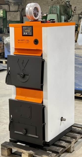 Твердотопливный котел WIRT Smart плюс 15 — это линейка из десяти стальных водогрейных котлов длительного горения. Оборудование предназначено для отопления бытовых и производственных помещений площадью от 180 до 1100 м². Мощность моделей варьируется от 15 до 100 кВт.
