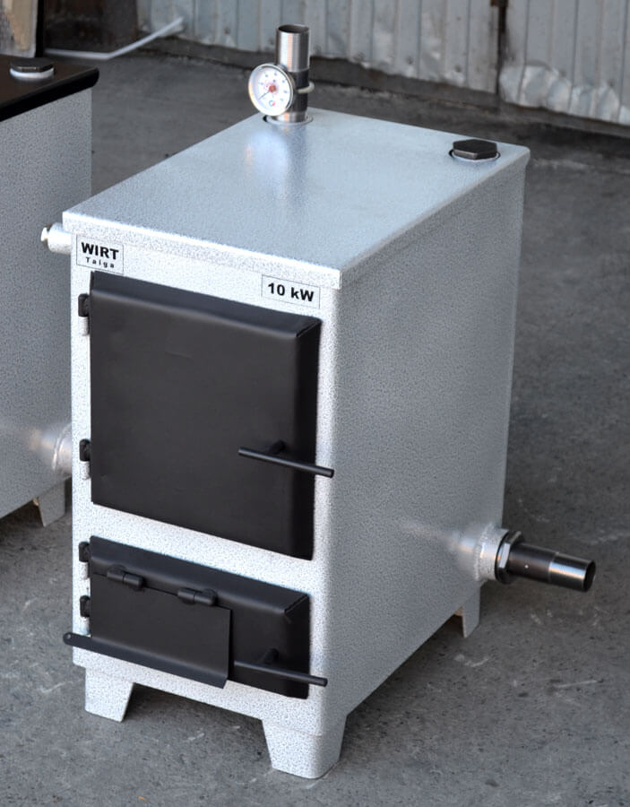 - Универсальность топлива: работа на твёрдом топливе (уголь, дрова, торфяные брикеты) и возможность перехода на газ, дизель или электричество.