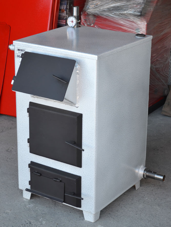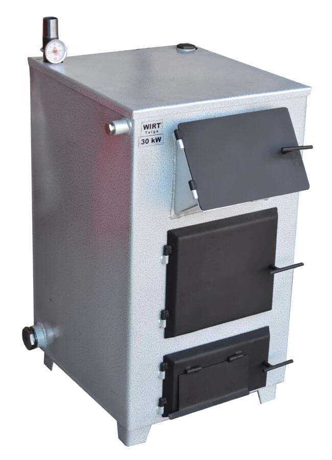 Твердотопливный котел WIRT Taiga (Тайга) 30М — это эффективное решение для отопления помещений площадью до 300 кв. м. Устройство обладает мощностью 30 кВт и может работать как на твёрдом топливе, так и на альтернативных источниках энергии. В базовой комплектации котёл использует уголь, дрова или торфяные брикеты. При необходимости его можно адаптировать для работы на газе, дизельном топливе или с применением электрических нагревателей (блоков ТЭН).